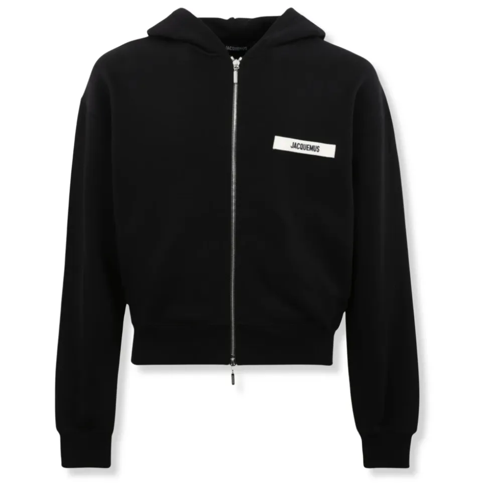 Jacquemus Le hoodie Gros Grain zippé er en regular-fit hættetrøje med lynlås, der har ribkanter og et brand-logo på brystet, hvilket giver et poleret hverdagslook. Vigtige egenskaber: Sort | Lynlås foran | Hætte | Ribkanter | Brand-logo på brystet | Hætteudskæring | Dimensioner og pasform: Regular fit