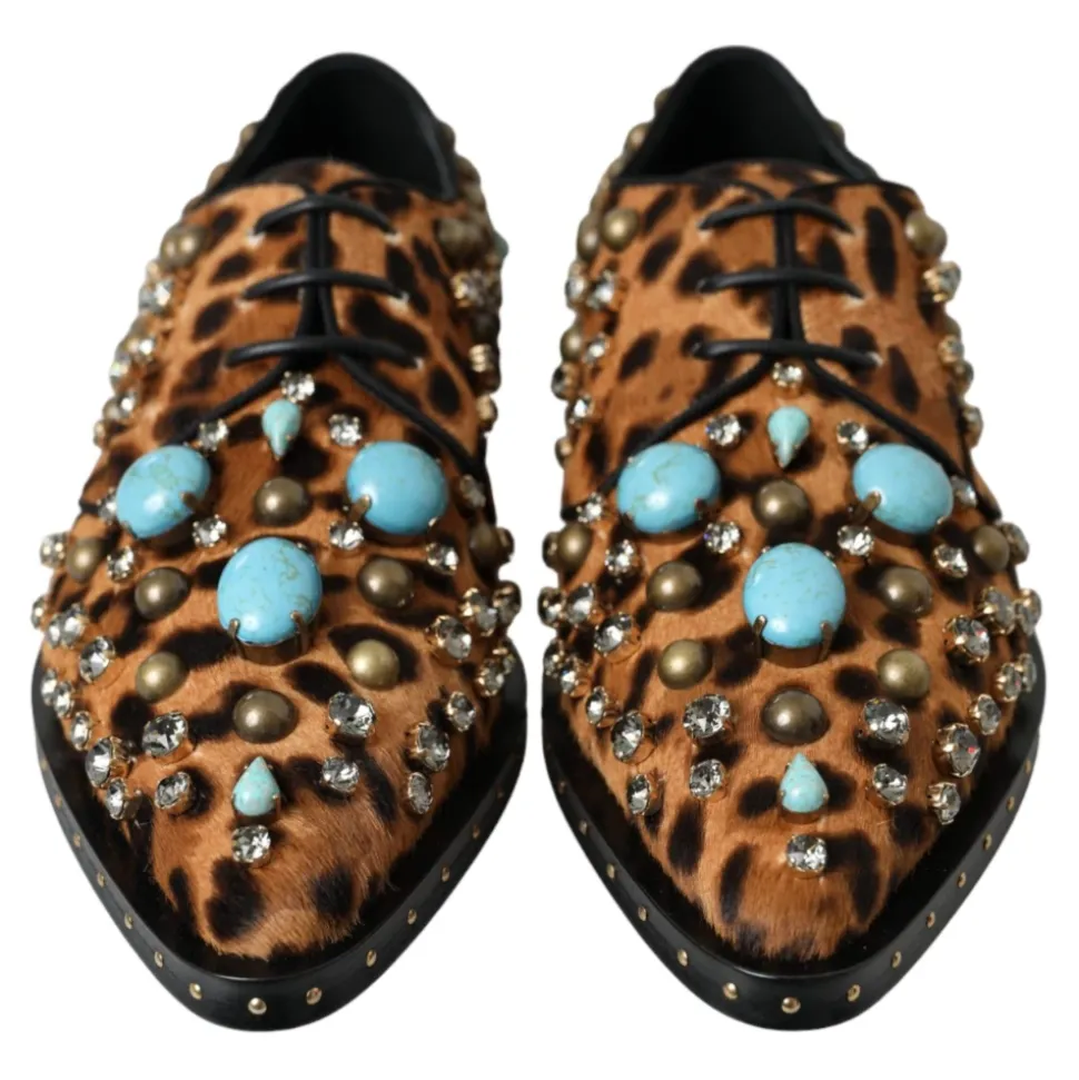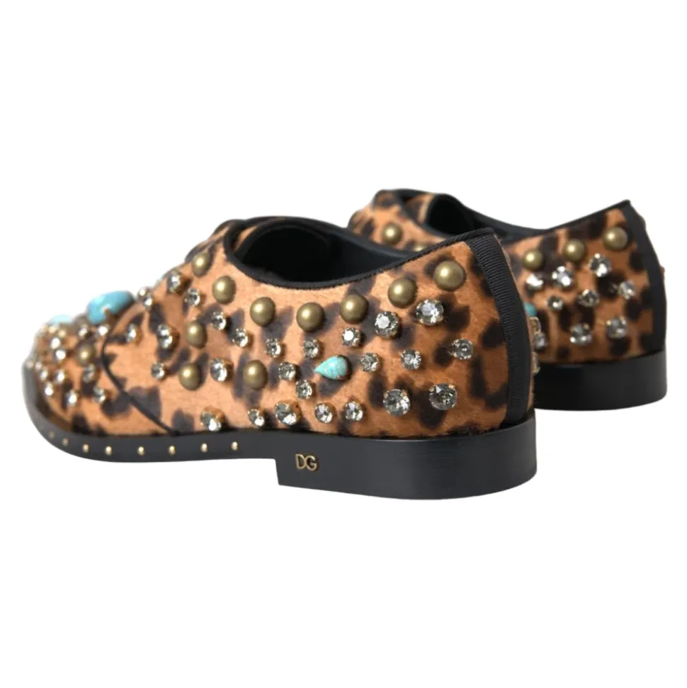 Dolce & Gabbana Leopard Sko kombinerer kalvepels paneler med flerfarvede krystaludsmykninger for en iøjnefaldende sko. Snørelukningen og lædersålen leverer en klassisk struktur med udstillingsdetaljer. Nøgleattributter: Brun | Sort | Flerfarvet | Kalvepels | Snørelukning | Lædersål | Dyremønster | Krystaludsmykning | Logo detalje | Sammensætning & pleje: 80% Kalvepels | 10% Polyester | 10% Viskose | Læder (sål)