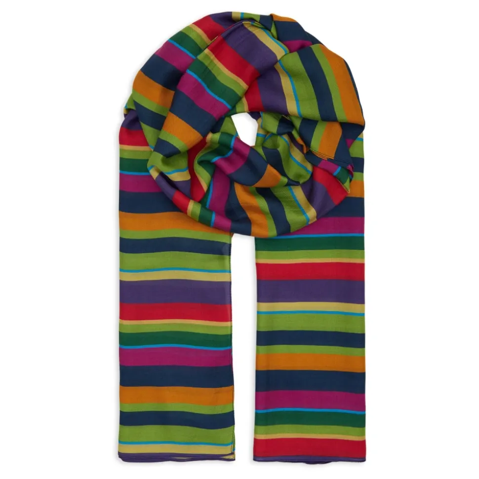 GALLO Let sciarpa er et let, blødt tørklæde designet med brandets karakteristiske flerfarvede stribemotiv. Det tilbyder et alsidigt lag, der kan bæres over eller under overtøj for ekstra varme og stil. Nøgleattributter: Blå | Flerfarvet | Modal | Let | Blød | Kan bæres over eller under overtøj | Flerfarvet stribemønster | Rektangulær form | Mål og pasform: 90 x 180 cm | One size | Sammensætning og pleje: 100% Modal | Må ikke vaskes med vand. Må ikke bleges. Må ikke tørretumbles. Stryg ved maks. 110°C. Professionel renseri.