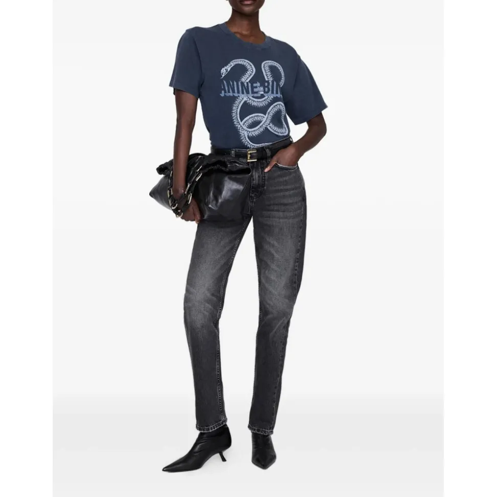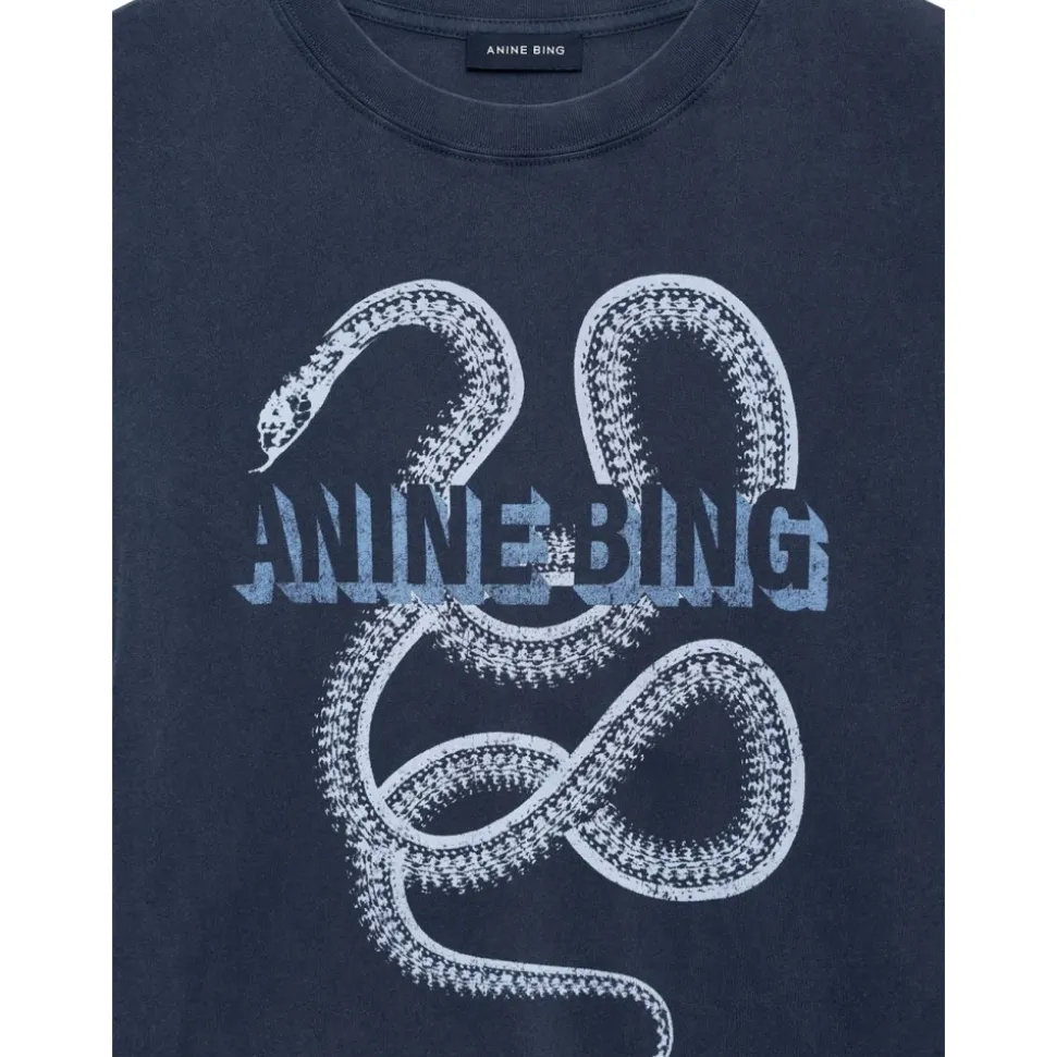 Anine Bing Lili Tee er en vasket sort bomulds T-shirt med en markant slange grafik og trykt logo. Den leverer et vintage, slidt look, der passer til afslappet hverdagsbrug. Nøgleattributter: Sort | Vasket sort | Bomuld | Letvægt | Åndbart stof | Lige kant | Lag-på-lag design | Rund hals | Korte ærmer | Ribstrikket krave | Grafisk slangeprint | Trykt logo på fronten | Vasket finish | Dimensioner og pasform: Størrelseskort (cm) — Bryst: XXS 78.7 | XS 82.6 | S 87.6 | M 93 | L 97.8 | XL 101.9 | Boxy, afslappet pasform | Normal i størrelsen for en afslappet silhuet | Sammensætning og pleje: 100% bomuld | Maskinvask