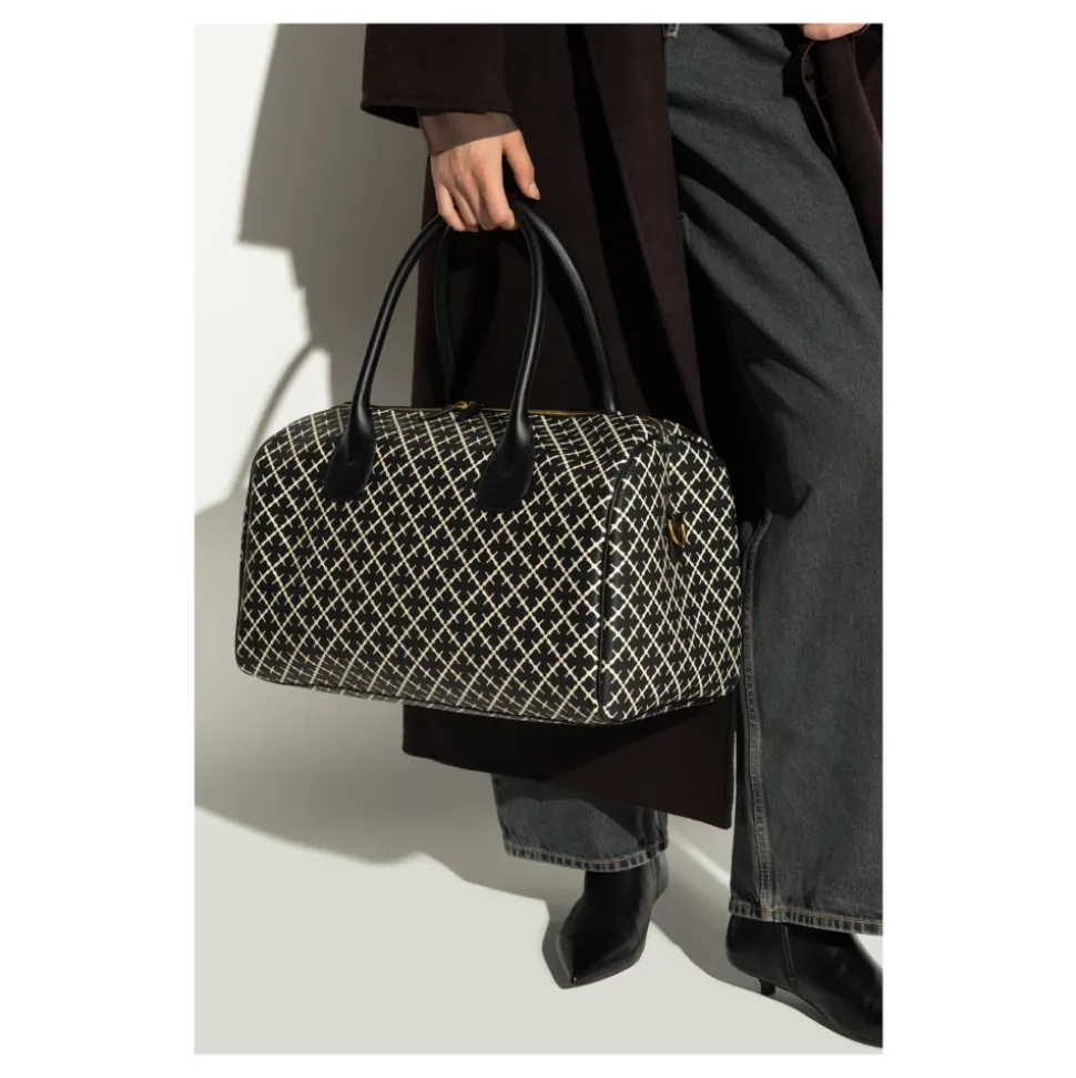 LULLU SMALL HANDBAG er et raffineret valg for kvinder, der værdsætter luksuriøs enkelhed og tidløs stil. Designet af det danske brand BY MALENE BIRGER, fortryller denne taske med sin sensuelle balance mellem nordisk klassicisme og et strejf af romantisk, kunstnerisk ånd. Dens geometriske, subtilt afrundede form fremhæves af robuste håndtag og en aftagelig skulderrem, hvilket gør den bemærkelsesværdigt funktionel. Overfladen er prydet med et tæt, stiliseret kløvermotiv på en sort baggrund, hvilket giver hele stykket en tidløs elegance og en karakteristisk monogramkarakter. Det højkvalitetsmateriale, der minder om tekstureret med en beskyttende belægning, er modstandsdygtigt over for fugt og pletter, hvilket sikrer både holdbarhed og elegance af produktet. HVORFOR KØBE DETTE PRODUKT? * Designer, karakteristisk mønster inspireret af skandinavisk æstetik * Særdeles holdbare og lette at vedligeholde materialer * Fleksibilitet takket være ergonomiske håndtag og justerbar rem * Luksuriøst detalje for kræsne kvinder, der værdsætter unikhed Højde: 33 cm Bredde på bredeste punkt: 43 cm Bundbredde: 23 cm Modellens mål: Højde: 176 cm Buste: 85 cm Talje: 60 cm Hofter: 89 cm