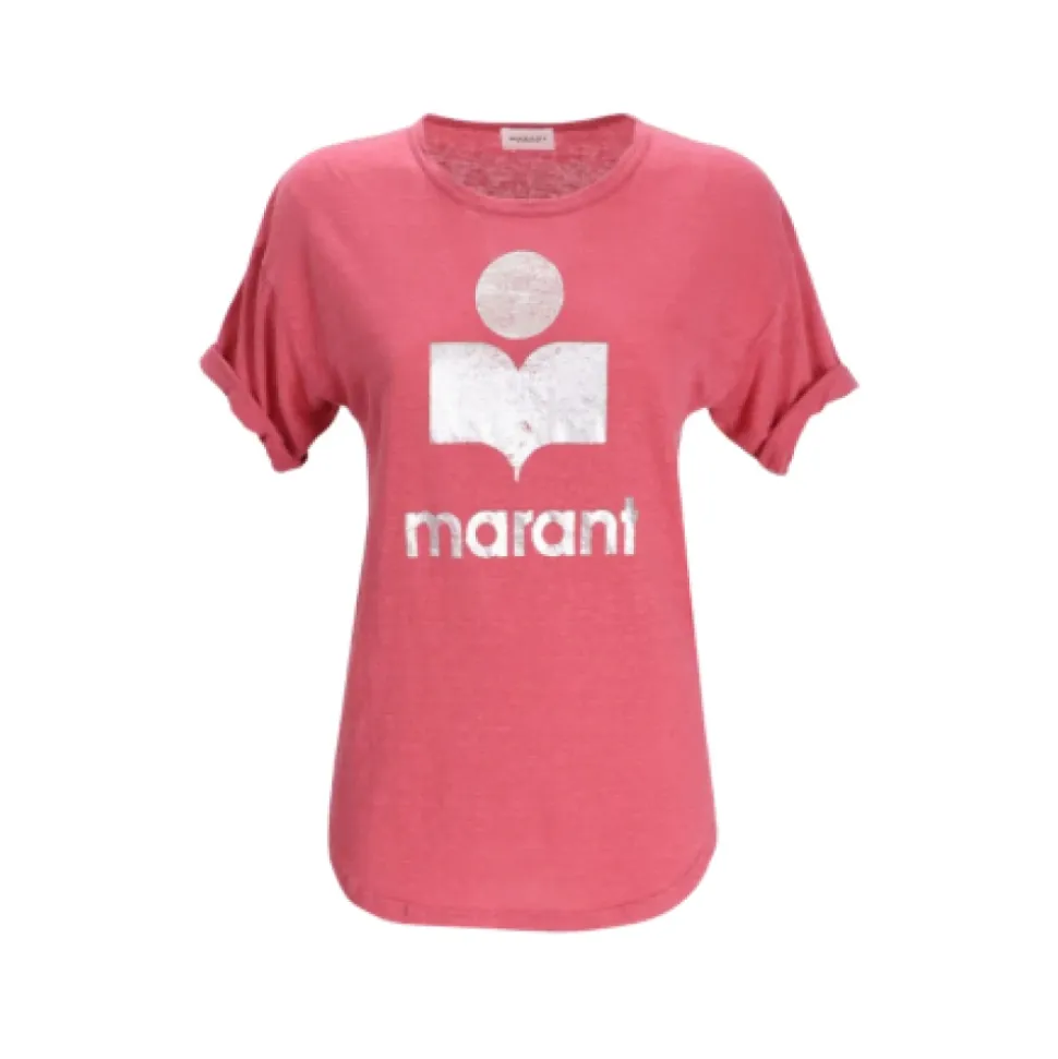 Isabel Marant T-shirt i hør med frontlogo, rund hals, korte ærmer, buet kant, lavet med mindst 50% materialer.