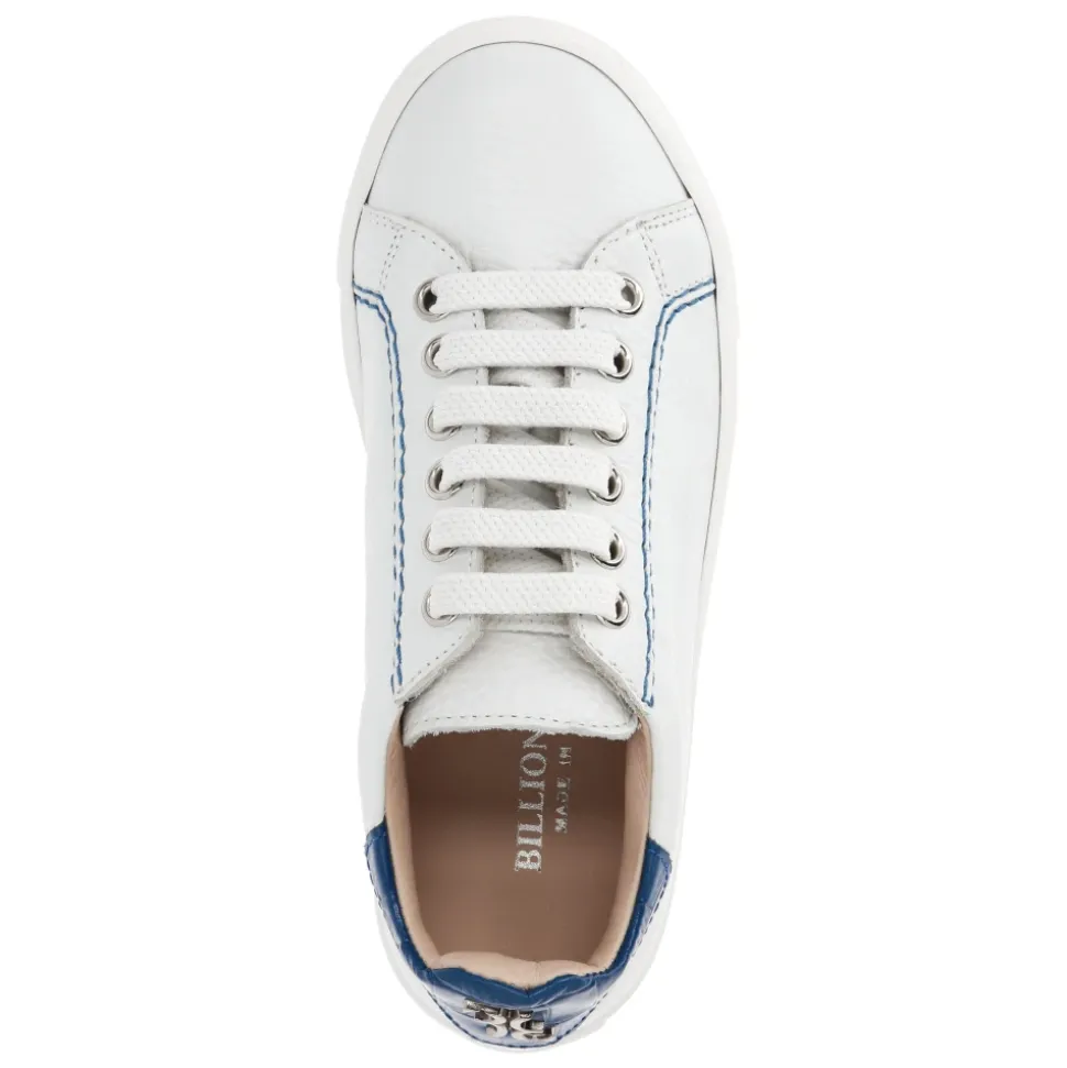 Billionaires Lo-Top Sneakers Double B kombinerer kalvelæder med hjorteskindprint med Maison’s broderede bogstaver på kraven for en raffineret, urban lav silhuet. Elastiske snørebånd, en polstret krave og en skridsikker gummisål giver komfortabelt, hverdagsligt fodfæste. Vigtige egenskaber: Hvid | Mellemblå | Kalvelæder | Skridsikker gummisål | Elastisk snørebåndsfront | Polstret krave, hælflap og pløs | Aftagelig indersål | Indvendigt læderfor | Lo-top silhuet | Hjorteskindprint finish | Maison bogstaver broderet på kraven | Sammensætning & pleje: Overdel: 100% kalvelæder | For: 100% kalvelæder | Ydersål: 100% gummi | Aftør med en blød klud og følg plejeinstruktionerne på produktetiketten.