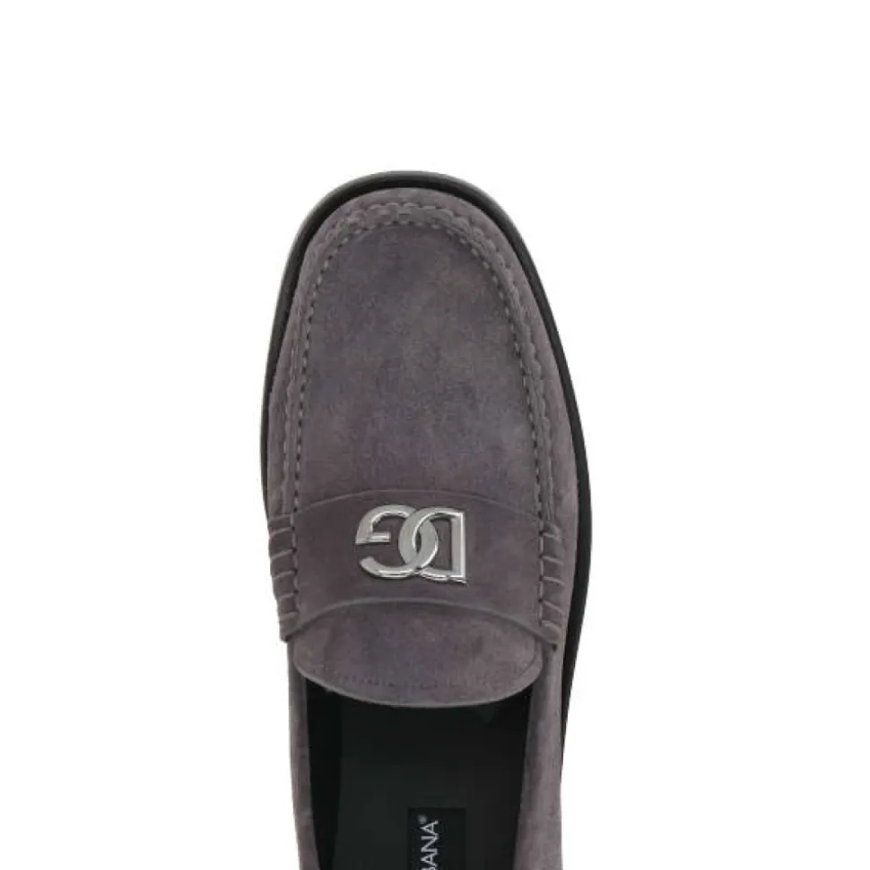 Opgrader dit afslappede look med disse Dolce & Gabbana loafers i mørkegrå ruskind. Det ruthenium-tone metal DG-logo tilføjer et strejf af luksus, mens læderforingen og sålen sikrer komfort og holdbarhed. Sandt til størrelse.