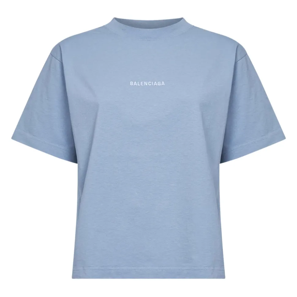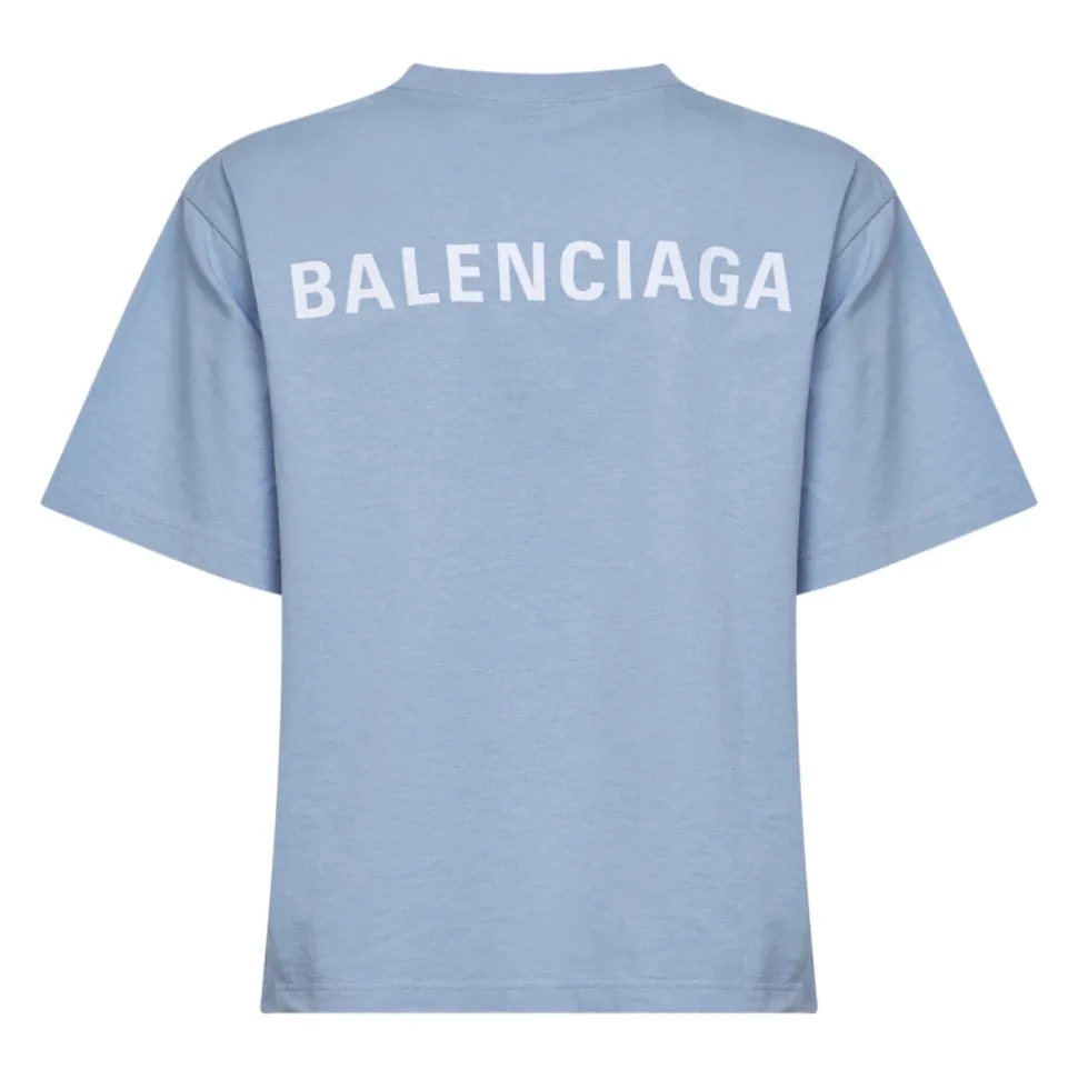 Balenciaga Logo Broderet Bomuldsjersey T-shirt er en lyseblå dry-jersey tee, der er markeret med hvid Balenciaga-broderi foran og bagpå. Dens medium pasform og ribstrikkede crewneck gør den til en alsidig hverdags top. Vigtige egenskaber: Lyseblå | Bomuld | Dry jersey | Ribstrikket crewneck | Korte ærmer | Bløde/droppede skuldre | Hvid Balenciaga-broderi foran og bagpå | Lige kant | Dimensioner & pasform: Medium fit | Sammensætning & pleje: 100% Bomuld | Maskinvask ved 30°C