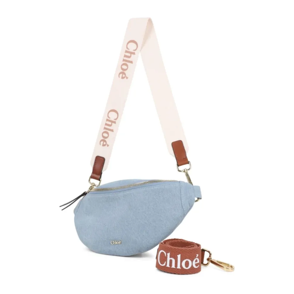 Chloé Logo Denim Bæltetaske kombinerer signaturlogo-detaljer med et kompakt, anvendeligt design. Den har to aftagelige stropper for flere bæremuligheder og et lynlåslukket hovedrum til hverdagens nødvendigheder. Nøgleattributter: Blå | Denim | Bomuld | Slidstærkt denimstof | Lynlåslukning foroven | To aftagelige stropper | Kan bæres som bælte, skuldertaske eller crossbody | Halvmåneform | Logo detalje | Guldfarvet hardware | Læderkant | Dimensioner og pasform: Højde: 13,5 cm | Maks. bredde: 27 cm | Dybde: 4,5 cm | Skulderremmens længde: 76 cm | Alsidig brug: bælte, skuldertaske eller crossbody | Justerbar remlængde op til 76 cm | Sammensætning og pleje: 100% bomuld (ydre) | 100% bomuld (foring) | Læderdetaljer | Pletrens