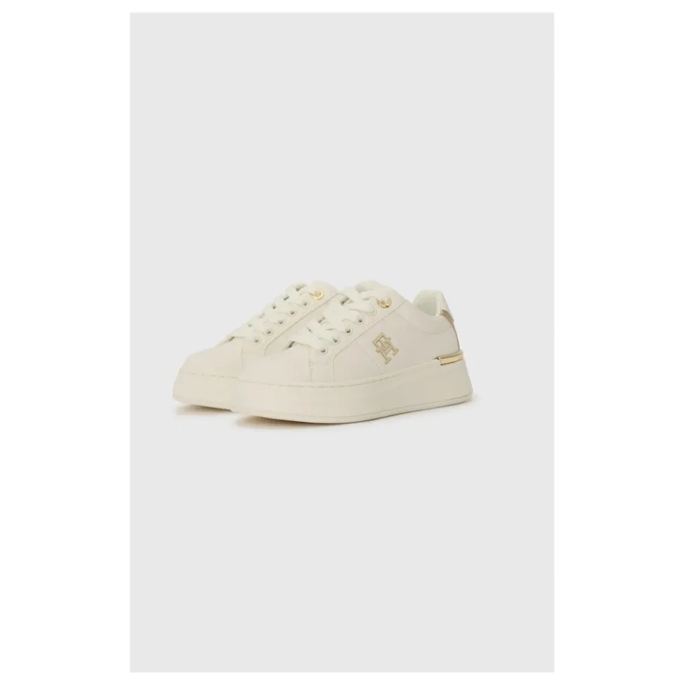 Tommy Hilfiger Logo-Detalje Sneakers kombinerer en hvid syntetisk overdel med signaturbranding og en polstret fodseng for komfortabel hverdagsbrug. Nøgleattributter: Hvid | Bianco | Polyurethan | Polstret fodseng | Gummiydersål | Logorem | Lav silhuet | Rund tå | Logo detalje | Dimensioner og pasform: fit_information | measurements | Sammensætning og pleje: 100% polyurethan | Pletrens.