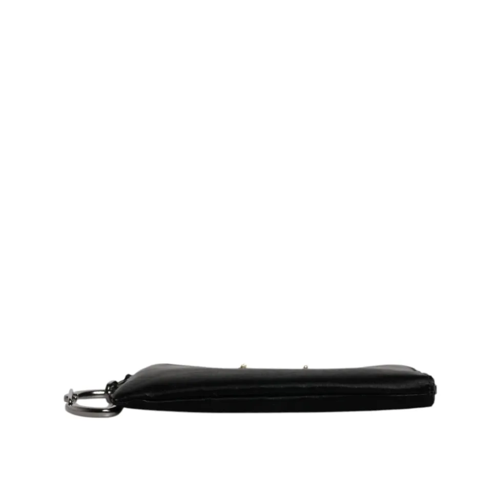 Dolce & Gabbana Logo Plaque Keyring Pouch kombinerer letvægts nylon med narvet kalveskind og en markant logo-plakette. En kompakt pung designet til at bære kort, nøgler og småting med raffinerede detaljer. Vigtige egenskaber: Sort | Sølv | Guld | Nylon og læder | Letvægt | Modstandsdygtig | Top lynlåslukning med logo vedhæng | Nøglering fastgørelse | Kompakt pung til kort og småting | Galvanisk logo-plakette | Narvet kalveskindsdetaljer | Leopard inderfor | Sølv- og guldfarvede metaldetaljer | Mål og pasform: 20 cm x 11,5 cm x 2 cm | Sammensætning og pleje: 64% Nylon | 34% Læder