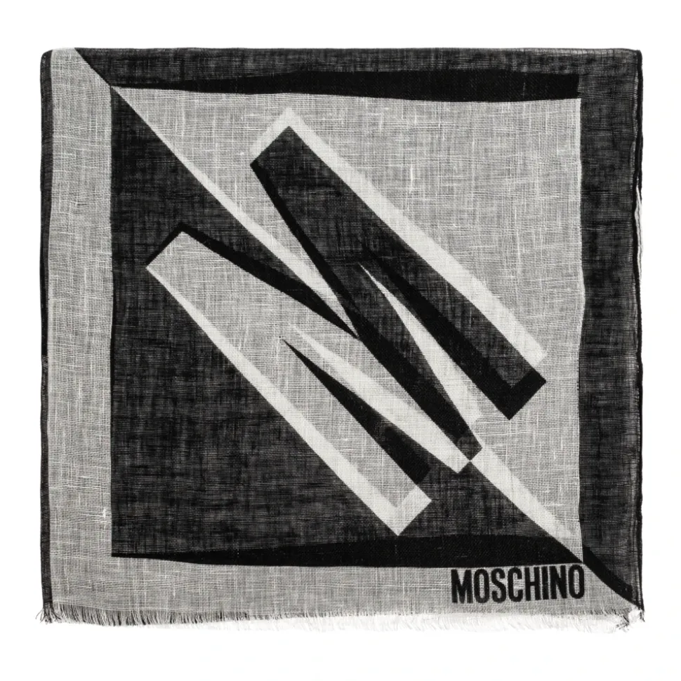 Moschino Logo Scarf er et moderne firkantet tilbehør, der defineres af et markant geometrisk hvidt mønster og et overdimensioneret logo i hjørnet. Dens lette linnedkonstruktion gør den åndbar og nem at style på tværs af årstider. Vigtige egenskaber: Sort | Linned | Åndbar | Let | Komfortabel til brug hele året | Alsidig styling til hals, hoved eller draperet brug | Firkantet snit giver mulighed for flere bindemuligheder | Markant geometrisk hvidt mønster | Overdimensioneret MOSCHINO-logo i det ene hjørne | Klassisk firkantet silhuet | Mål og pasform: Bredde: 55 cm | Længde: 180 cm | One size | Universelt firkantet snit | Sammensætning og pleje: Linned 100%