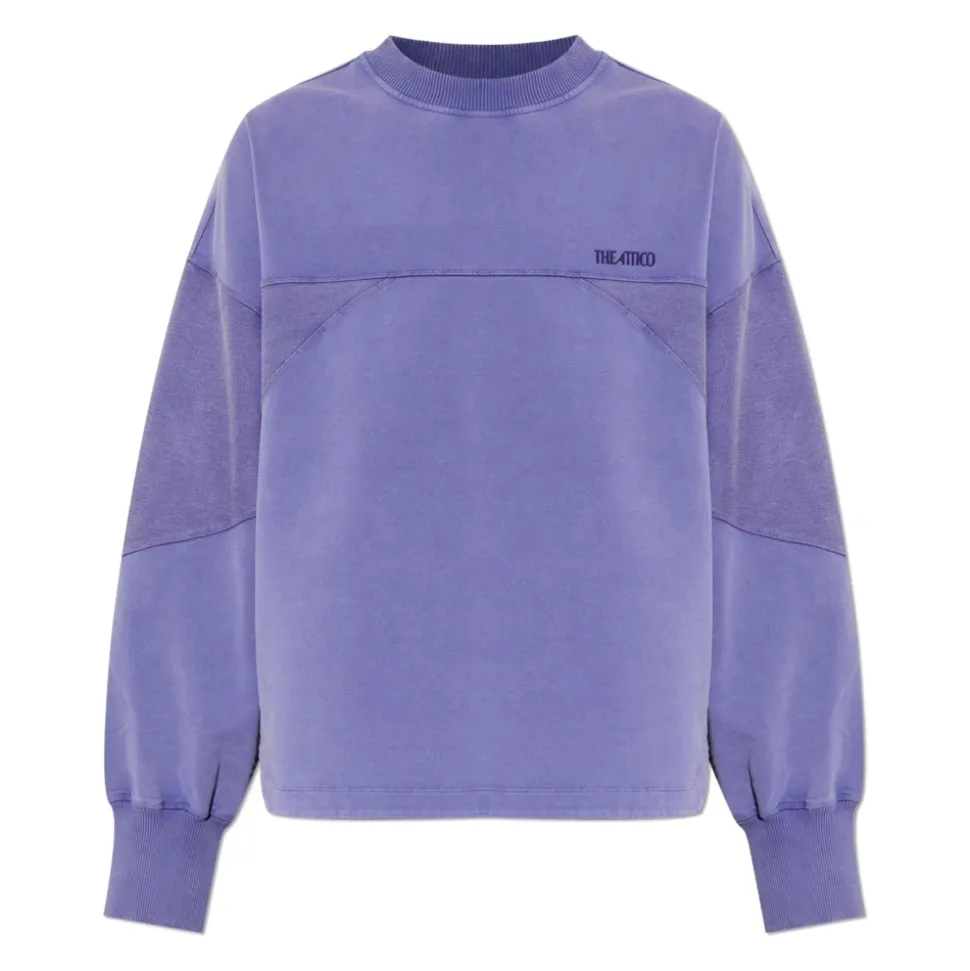 The Attico Logo Sweatshirt tilfører et dristigt, moderne præg til hverdagslooket med en oversized crewneck-silhuet og et fremtrædende broderet logo. Designet til komfort og kombinerer skulpturelle syninger med en blød, mat bomuldsfinish. Vigtigste egenskaber: Lilla | Bomuld | Blød, mat finish | Komfortabel til brug hele dagen | Crew-udskæring | Geometriske syninger hen over bryst og skuldre | Broderet logo på brystet | Brede ærmer | Dimensioner & pasform: Modelhøjde: 176 cm | Bryst: 85 cm | Talje: 60 cm | Hofter: 89 cm | Modellen er iført størrelse: 40 | Oversized pasform | Sammensætning & pleje: 100% Bomuld | Maskinvask kold på et skånsomt program. Må ikke bleges. Tørretumbles ved lav varme eller lægges fladt til tørring. Stryg ved lav varme om nødvendigt.
