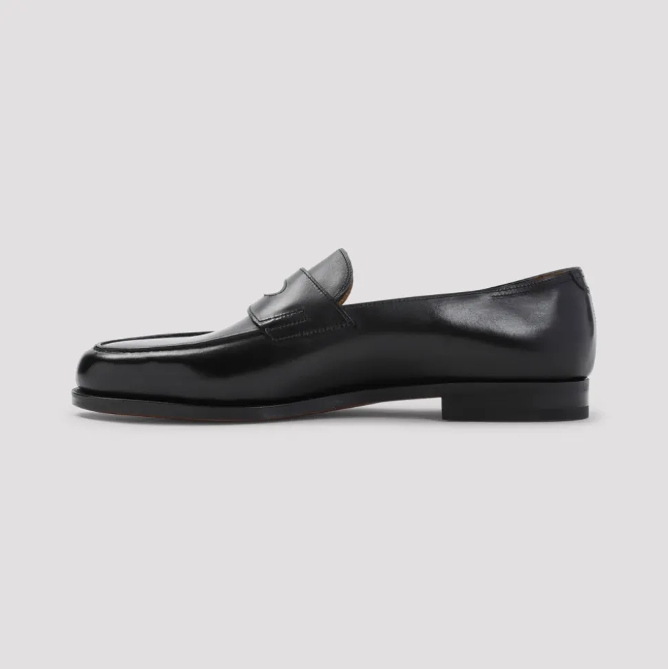 John Lobb Lopez Loafers kombinerer klassisk penny-loafer-styling med raffineret kalveskindskonstruktion og tilbyder en lav, stablet hæl for diskret hverdags elegance. Vigtige egenskaber: Sort | Kalveskind | Slip-on design | Brandet læder indersål | Mandelformet tå | Penny strop | Håndsyet forklæde | Lav stablet hæl | Dimensioner & pasform: Hælhøjde: 2,5 cm | Sammensætning & pleje: Kalveskind (overdel) | Læderforing | Lædersål