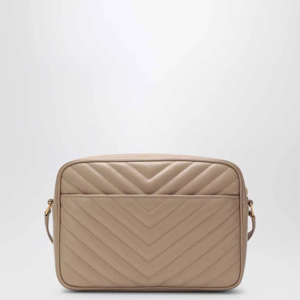 Saint Laurent Lou Camera Bag i quiltet kalveskindslæder, designet som en kompakt crossbody til hverdagsbrug med det karakteristiske Cassandre-logo og quiltede overstikninger. Vigtige egenskaber: Mørk beige | Kalveskindslæder | Holdbar konstruktion | Justerbar skulderrem i læder | Top lynlåslukning | Udvendig flad baglomme | Indvendig flad lomme | Quiltede overstikninger | Cassandre metal logo i midten | Topstitched kanter | Bronze-tonede metal hardware | Grosgrain foring | Dimensioner & pasform: One size | Sammensætning & pleje: 100% kalveskindslæder | Rengør med en blød klud; opbevares i støvpose.