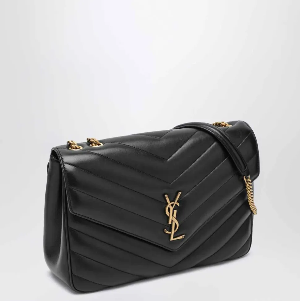 Saint Laurent Loulou Large Bag – en matelassé lammeskindstaske med chevron-quiltede syninger og en justerbar kæderem, designet til alsidig brug fra dag til aften. Vigtigste egenskaber: Sort | Lammeskind | Justerbar kædeskulderrem (kan bæres over skulderen eller crossbody) | Aftagelig læderpung | Magnetisk trykknaplukning | Indvendig flad lomme | Lommespejl | Chevron-quiltede (matelassé) syninger | Frontklap med magnetisk lukning | Cassandre-bogstavlogo | Polstret topstikning | Mål og pasform: B 32 cm x H 22 cm x D 10 cm | One size | Sammensætning og pleje: Ydre: 100% lammeskind | Foring: 100% grosgrain (stof) | Hardware: Messing | Rengør med en blød klud.