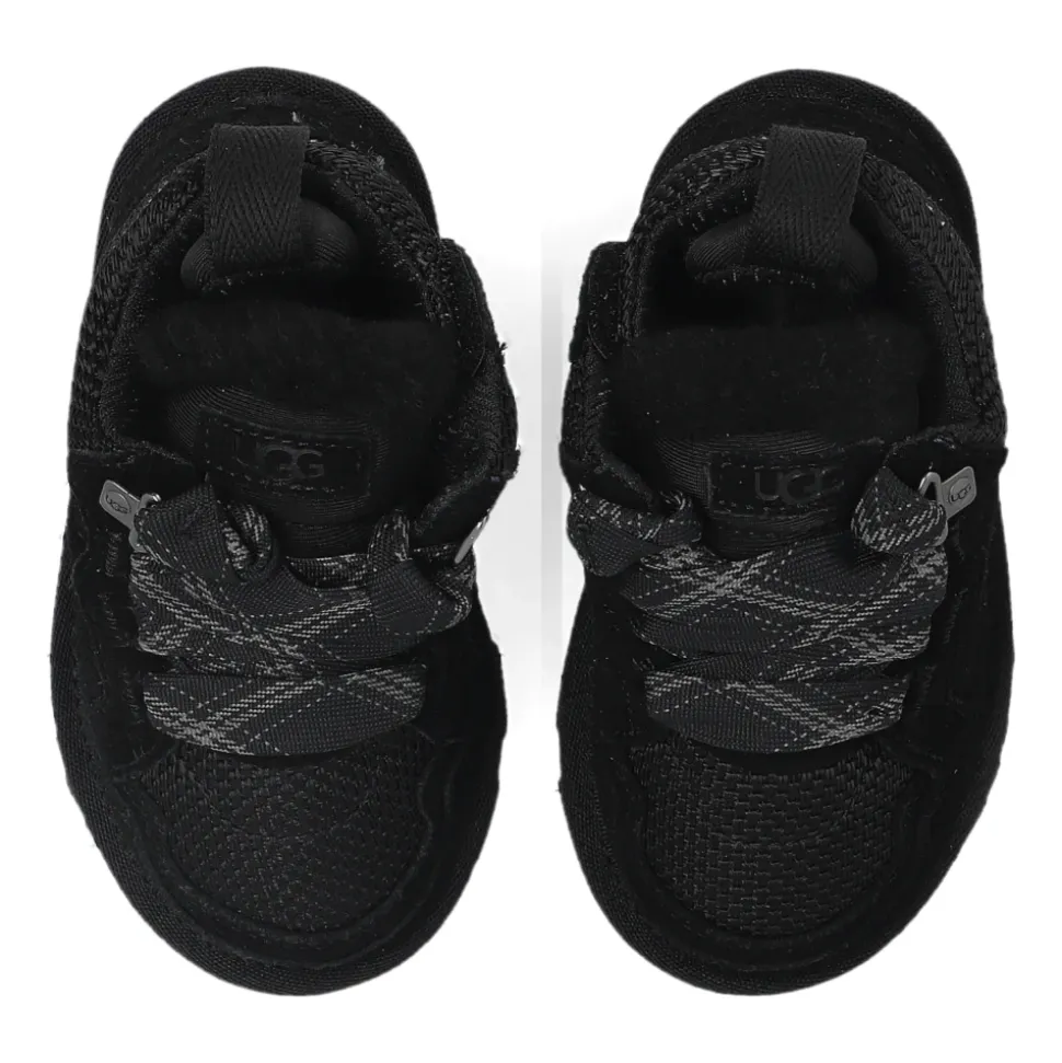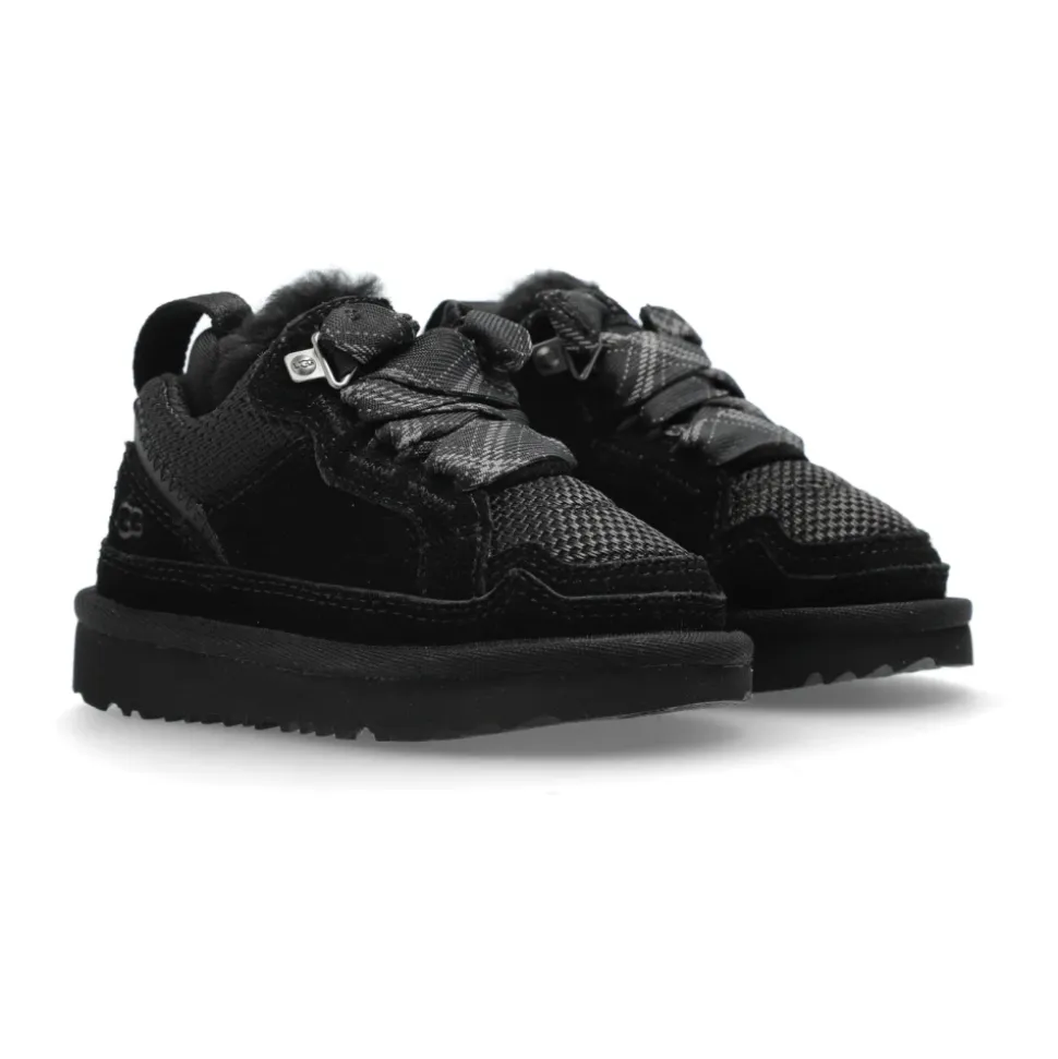 UGG Lowmel Sneaker kombinerer ruskind og tekstilkonstruktion med et blødt, isoleret for for polstret komfort og stabil støtte. Designet til hverdagsbrug, den kombinerer en klassisk lav profil med moderne mesh-detaljer. Nøgleattributter: Sort | Ruskind, Tekstil | Isolerende plysfor | Polstret fodseng | Stabil sålkonstruktion | Åndbare mesh-indsatser | Polstret krave og pløs | Snørelukning | Webbing hælstrop | Forstærket hæl | Lav sneakerprofil | Rundet tå | Mesh- og glat panelkomposition | Monokrom minimalistisk finish | Dimensioner og pasform: Sålhøjde på højeste punkt: 2 cm | Sammensætning og pleje: Overdel i ruskind | Overdel i tekstil | Tekstilfor (polyester) | Plysfor (UGGplush) | Skumsål | Sugarcane EVA-ydersål