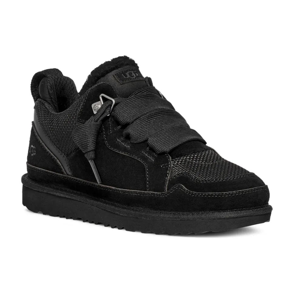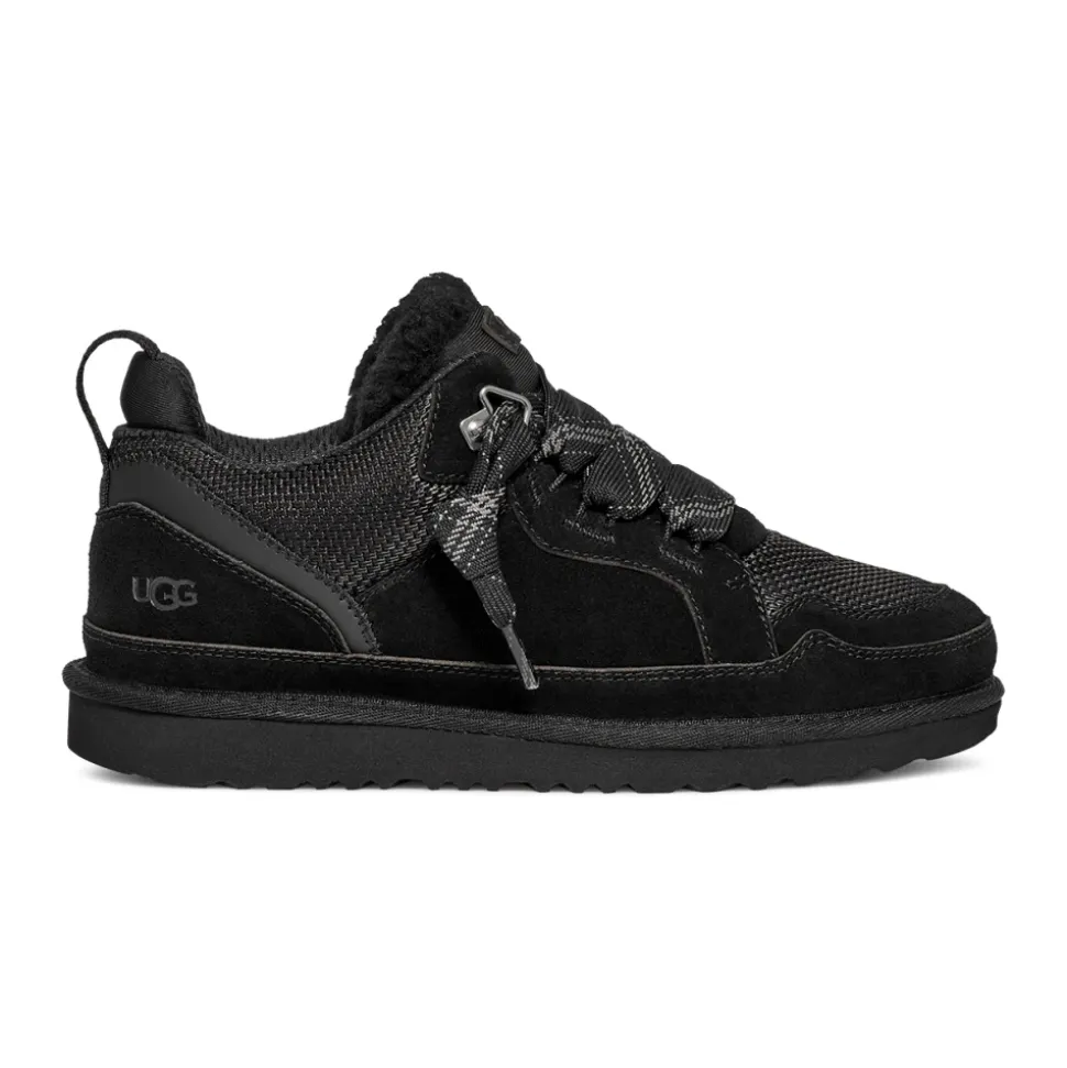 UGG Lowmel er en afslappet sneaker, der kombinerer ruskind og tekstilkonstruktion med en polstret UGGplush-indersål for komfortabel hverdagsbrug. Dens åndbare mesh-vamp og polstrede krave gør den velegnet til heldagsaktivitet og brug i varmt vejr. Vigtigste egenskaber: Sort | Ruskind og tekstil | Åndbar mesh-vamp | Polstret UGGplush-indersål | Letvægts EVA-ydersål | Støbt/skum-fodseng | Webbing-hælstrop | Traditionelt snøresystem | Polstret krave | Ekstra sæt snørebånd inkluderet | Varme-præget logo | Chunky runde snørebånd | To-tonet flad snøremulighed | UGG-logo patch | Oversized polstret pløs | Sammensætning & pleje: Overdel: Ruskind og tekstil | Tekstilfor: 45% polyester, 55% polyester | Indersål: 10 mm UGGplush (60% uld, 40% TENCEL Lyocell) | Fodseng: EVA/skum | Ydersål: EVA | Snørebånd: 100% polyester | Tekstilbinding: 100% polyester
