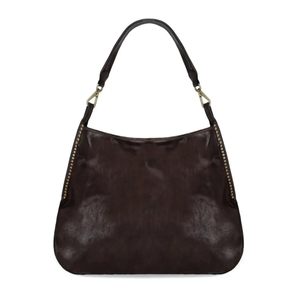 Campomaggi Luana Taske er en skuldertaske i læder, der kombinerer rummelig organisering med guldfarvede nitter. Designet til hverdagsbrug, den inkluderer en justerbar, aftagelig rem for behagelig skulderbæring. Nøgleattributter: Brun | Læder | Lynlåslukning | Justerbar og aftagelig skulderrem | Dobbelt indvendigt rum | Stor central lomme | Kortholderlomme | Indvendig lynlåslomme | Guldfarvede metalnitter | Nittet logo patch på bagsiden | Foret indre | Dimensioner og pasform: 42x35x9 cm | Sammensætning og pleje: 100% læder | Indre: 90% bomuld, 10% læder | Aftørres med en blød klud. Brug læderrens/balsam efter behov, og opbevar væk fra direkte sollys.