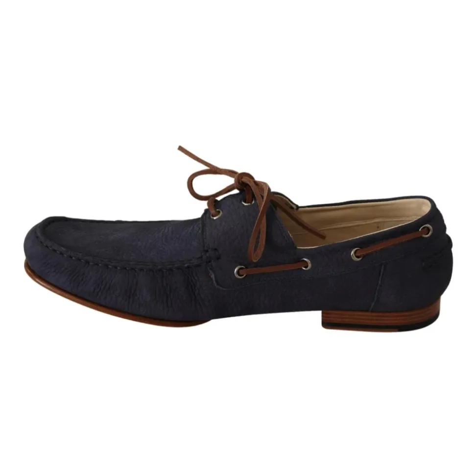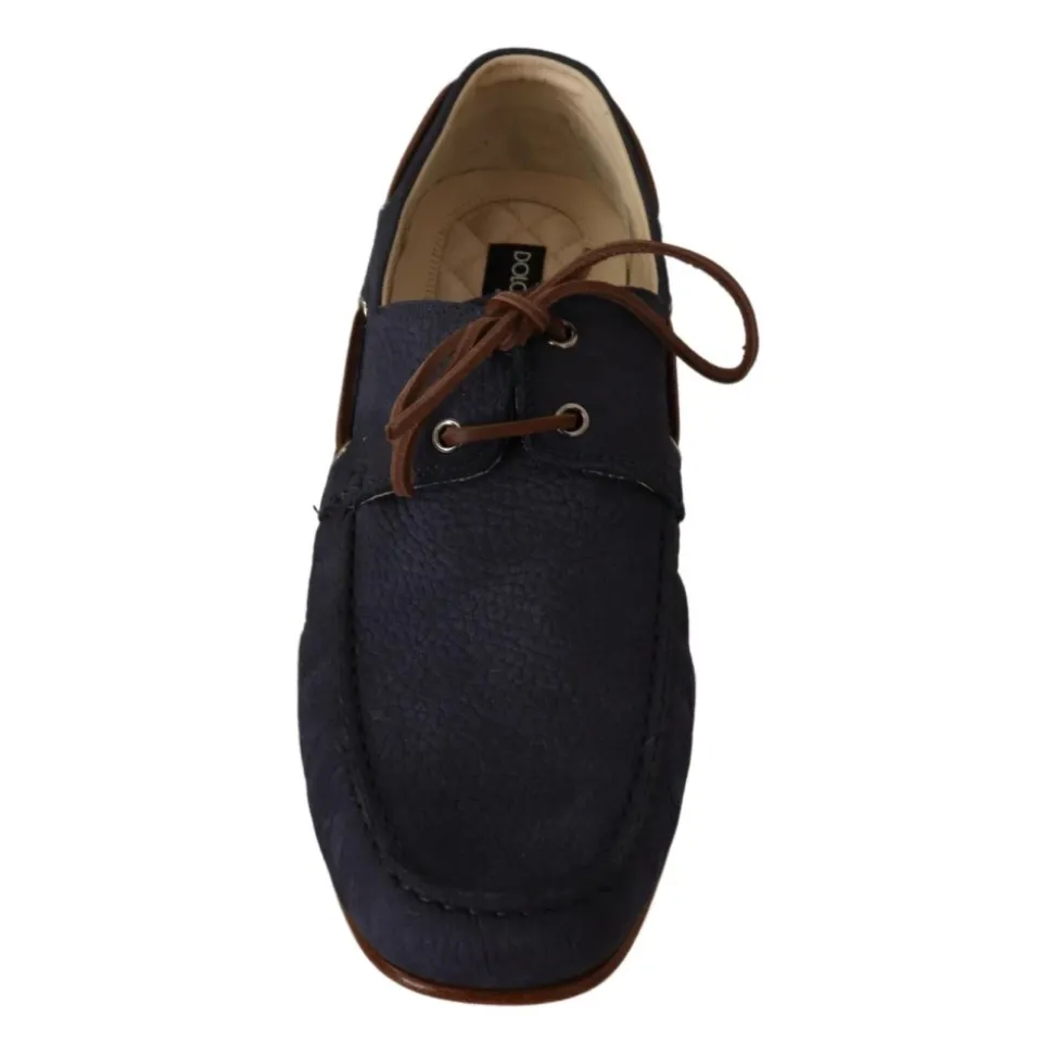 Forhøj din stil med Dolce & Gabbana’s luksuriøse læderbådesko. Fremstillet i Italien, disse sofistikerede blå og brune sko har omhyggelige logo detaljer. Den højkvalitets lædersål sikrer holdbarhed og komfort, hvilket gør dem til et perfekt tilbehør til enhver kræsen herres garderobe.