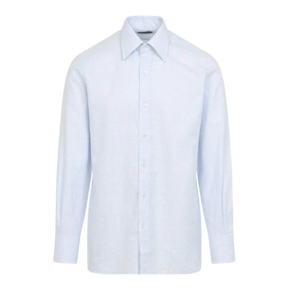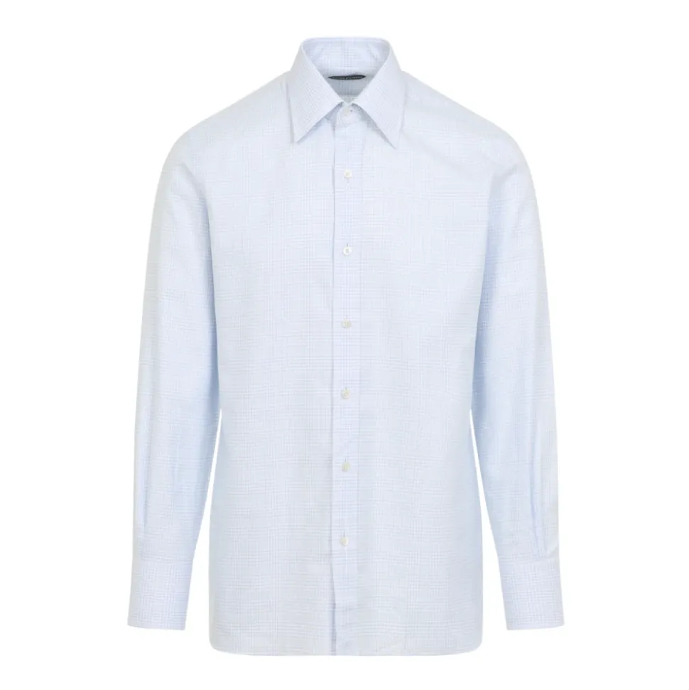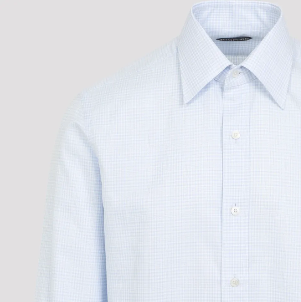 Tom Ford lyseblå bomuldsskjorte kombinerer en lyseblå ternet bomuldsvævning med klassiske skjortedetaljer til et poleret formelt og smart-casual look. Nøgleattributter: Multicolor | Uud sky multicolor | Bomuld | Spids krave | Knaplukning foran | Lange ærmer med knapmanchetter | Bærestykke bagpå med to indsnit | Rund søm | Ternet mønster | Sammensætning & pleje: Bomuld