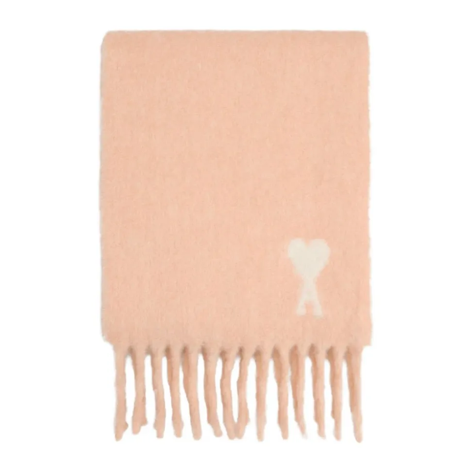 Forkæl dig selv med dette pudderrosa jacquard Ami de Coeur logo tørklæde fra Ami Paris. Med frynsede kanter og rektangulær form er dette tørklæde et must-have tilbehør til kvinder.