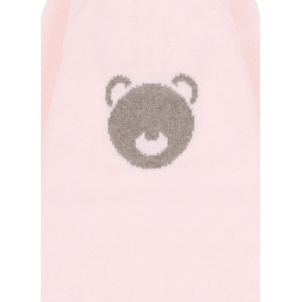 Lyserød uldromper med bjørneudsmykning
