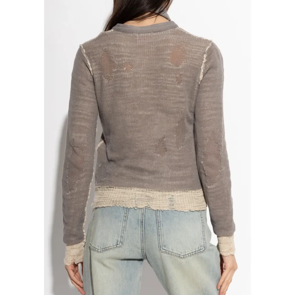Diesel M-DRACARINA Sweater kombinerer et klassisk, lige snit med en gennembrudt, semi-transparent strik og en asymmetrisk, aftagelig halsudskæring for et moderne, avantgarde look. Nøgleattributter: Beige | Strik | Semi-transparent | Let | Åndbar | Aftagelig halsudskæring med metaldetalje | Let og behagelig at have på | Bevægelsesfrihed | Asymmetrisk, aftagelig halsudskæring med metalaccessory | Gennembrudt vævning | Ribdetaljer på ribkanter og skuldersømme | Rå, ældede kanter og subtile slidmærker | Taljelængde | Mål & pasform: Modelhøjde: 177 cm | Model brystmål: 83 cm | Model taljemål: 61 cm | Model hoftemål: 89 cm | Modellen er iført størrelse: S | Klassisk, lige snit | Lidt løs pasform | Taljelængde