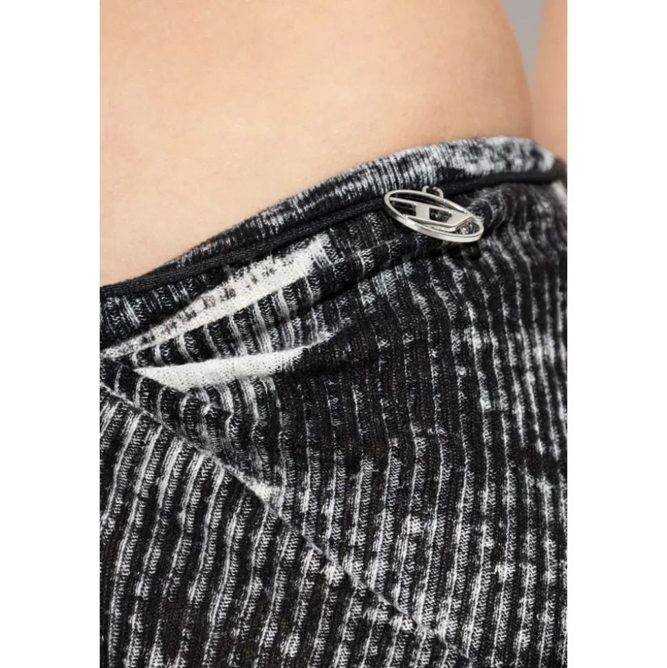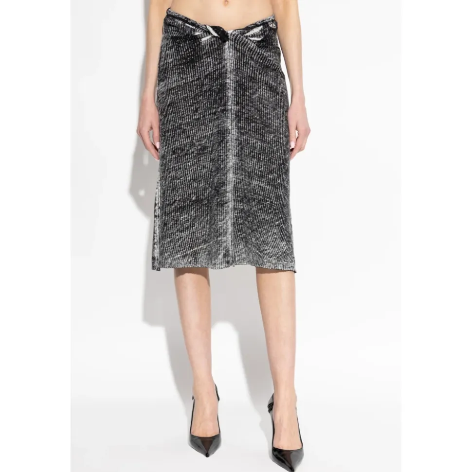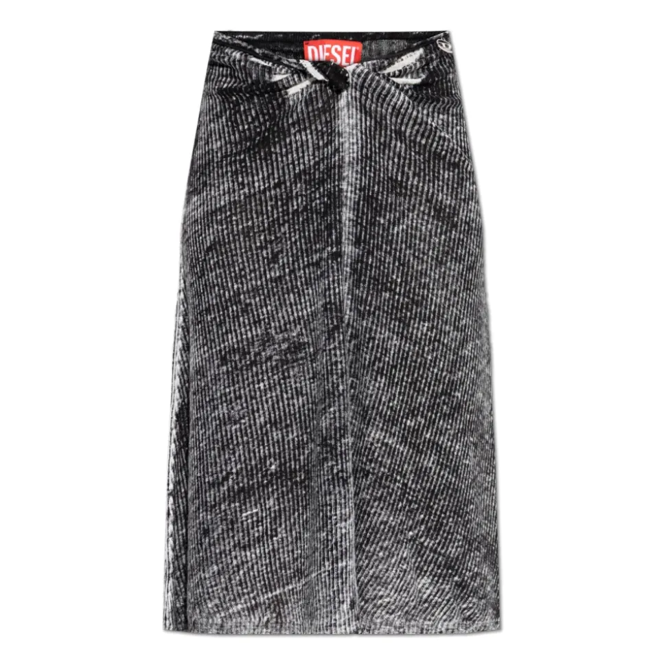 Diesel M-LIVETTE nederdelen kombinerer raffineret elegance med et moderne touch, fremhævet af en pudderagtig gradienteffekt og en karakteristisk sikkerhedsnål ved taljen, der giver en iøjnefaldende finish. Nøgleegenskaber: Sort | Linned | Blødt, fleksibelt stof | Behagelig at have på hele dagen | Let udvidet kant for bevægelsesfrihed | Taljedetalje med sikkerhedsnål | Midi-længde | Gradienteffekt med subtile, distressede hvide striber | Pudderagtig tekstureffekt | Minimalistisk, moderne silhuet | Sikkerhedsnål ved taljen
