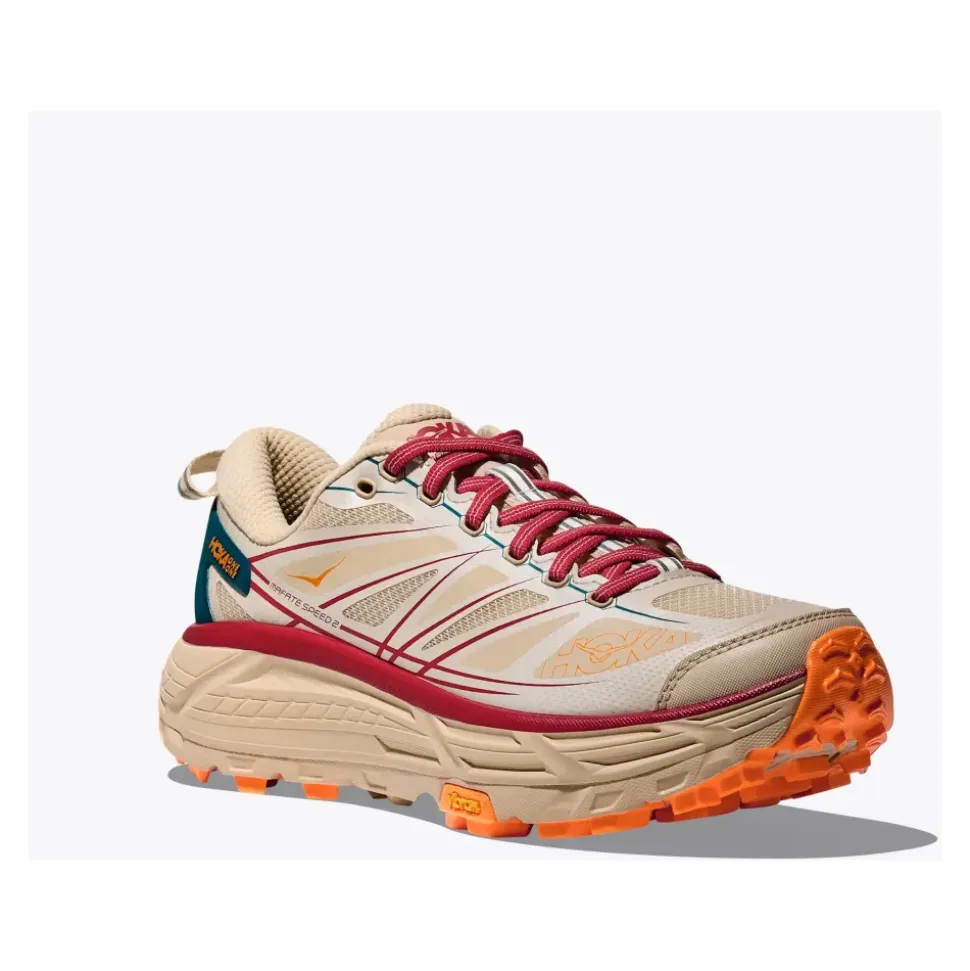 Hoka One One Mafate Speed 2 er en trail-løbesko, der kombinerer responsiv stødabsorbering med aggressiv Vibram-trækkraft til teknisk terræn og hverdagsbrug. Vigtige egenskaber: Beige | Neutrale | Stof | Vibram MegaGrip-ydersål for trækkraft | CMEVA-mellemsålsstødabsorbering | Meta-Rocker-geometri i tidligt stadie for jævne overgange | Let, støttende konstruktion | Snørelukning | Ekstern monomesh-beskyttelsesskærm | Lav silhuet | No-sew SpeedFrame-konstruktion | Skulptureret svangstøtte | Dimensioner & pasform: Lille i størrelsen – overvej at bestille en størrelse større. | Sammensætning & pleje: Overdel i stof | For i stof | CMEVA-mellemsål | Ydersål i gummi (Vibram MegaGrip)