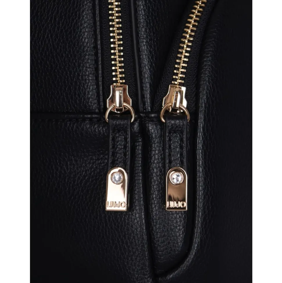 Liu Jo Manhattan M Backpack er en kompakt rygsæk til hverdagsbrug, der kombinerer kunstlæderstil med praktisk opbevaring. Den skiller sig ud med sit tophåndtag og justerbare skulderstropper med guldfarvet hardware og en lynlåslukning for sikker transport. Nøgleattributter: Sort | Syntetisk læder | Tophåndtag | Justerbare skulderstropper | Lynlåslukning | Flere rum | Indvendig lynlåslomme | A4-kompatibelt hovedrum | Logo plaque | Guldfarvet hardware | Mål og pasform: 26 x 30 x 13 cm | Sammensætning og pleje: Syntetisk læder | Polyesterfor