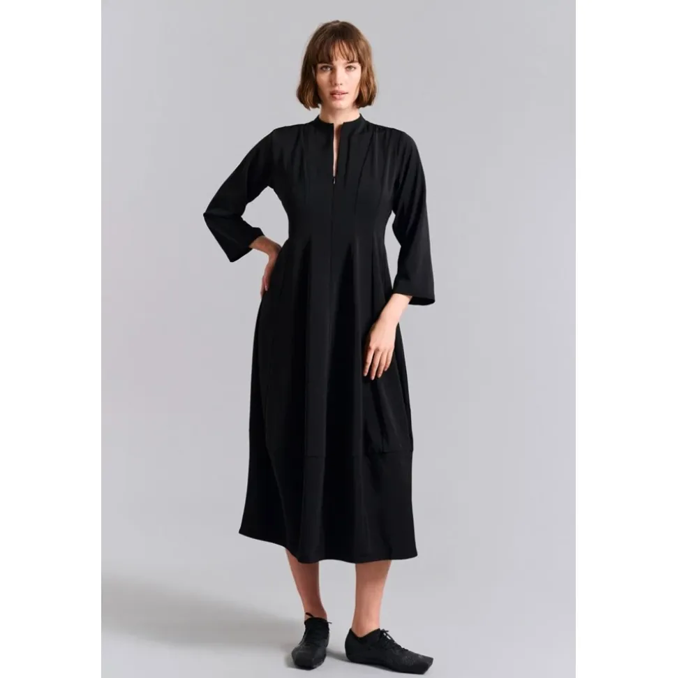 Bitte Kai Rand maxikjole med et skulpturelt snit, lille krave og en tulipanformet nederdel. Det strækbare stof sikrer behagelig brug, hvilket gør den velegnet til både arbejde og festlige lejligheder. Vigtige egenskaber: Sort | Strækstof for komfort | Behagelig at have på | Alsidig til arbejde og specielle lejligheder | Lille krave | Let taljeformning | Tulipanformet nederdel | Skulpturelt snit | Mål & pasform: Modelhøjde: 181 cm (iført størrelse S) | Fuld længde (størrelse S): ca. 132 cm | Let skræddersyet pasform med let taljeformning | Skulpturel silhuet med tulipanformet nederdel | Stræk giver behagelig, fleksibel pasform