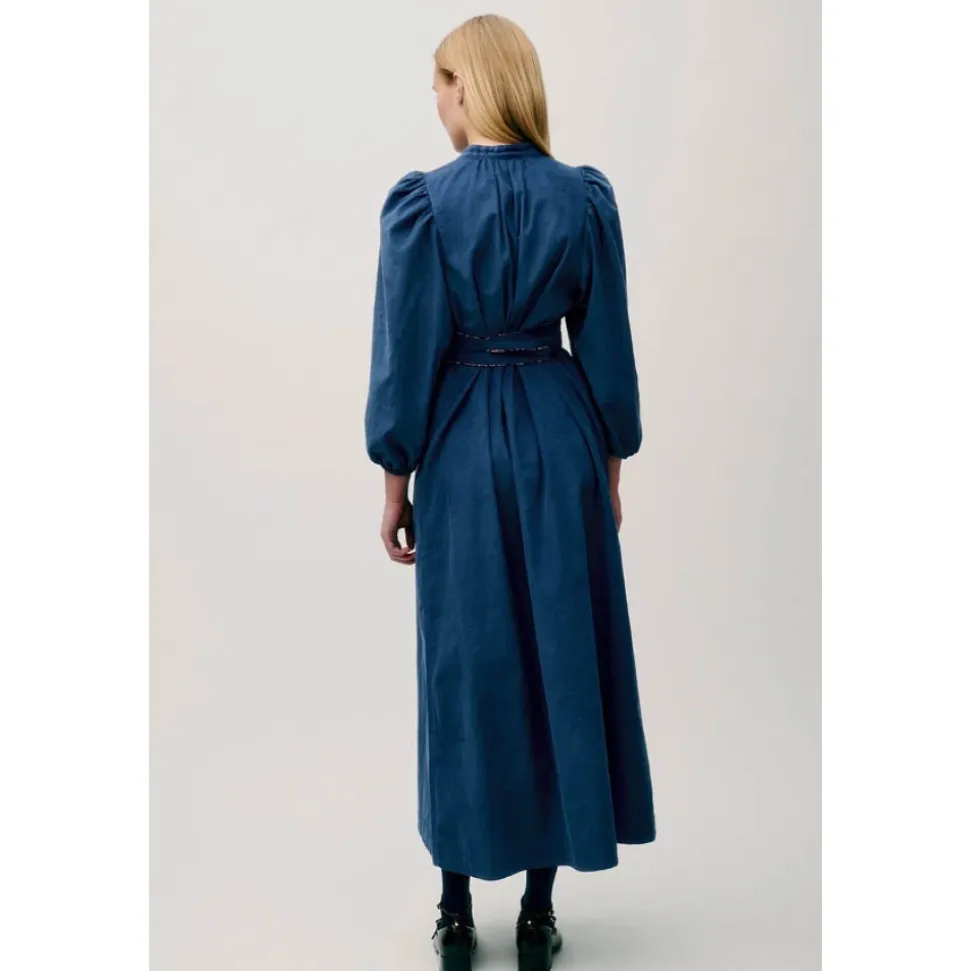 APOF Maya Kleid er en lang babyfløjls kjole i parisisk blå med ballonærmer og en markeret talje – designet til afslappet, efterårsklar hverdagsbrug med subtile skjulte detaljer. Nøgleattributter: Blå | Bomuld | Ballonærmer | Markeret/indsnøret talje | Piping detaljer | Skjult blomsterfor | Midi/lang længde | Blød babyfløjls tekstur | Dimensioner & pasform: Almindelig pasform – passer normalt. | Sammensætning & pleje: 100% Bomuld