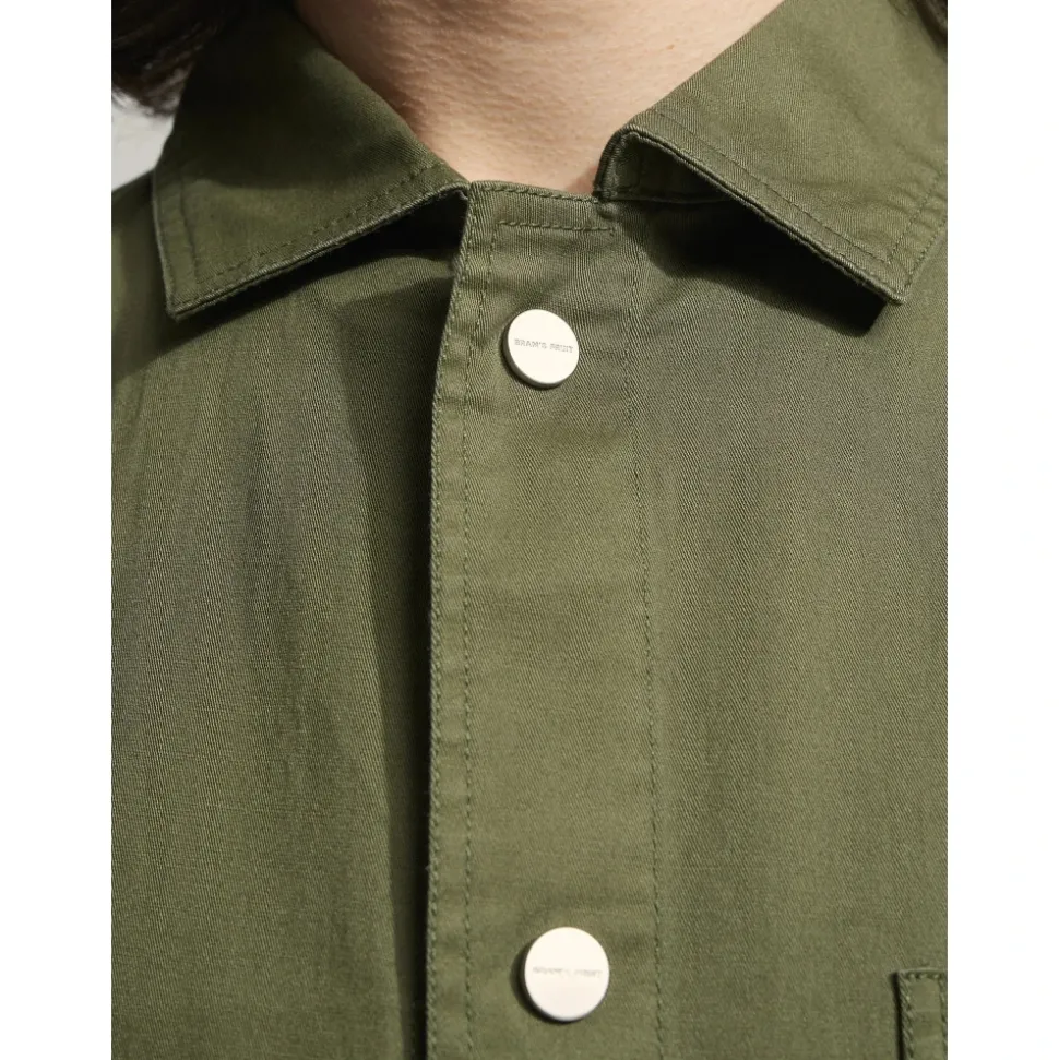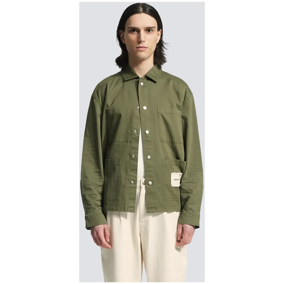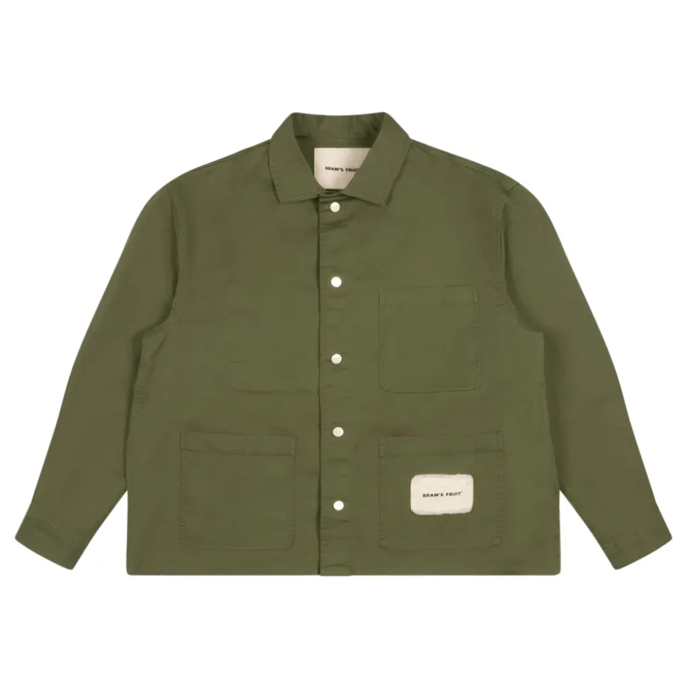 Præsenterer Bram’s Fruit Chore Overshirt til mænd, en afslappet skjorte lavet af midweight bomuldsstof med en afslappet pasform. Denne overshirt har tre lommer på forsiden, et mærket lærredsmærke på den nederste lomme og trykknaplukning.