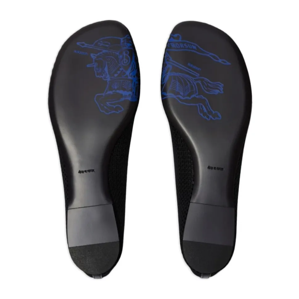 Løft din stil med Burberrys Mesh Ballerina Sko, der har et elegant stretch-design og det ikoniske rytterridermotiv. Produkt detaljer: Sort | Mesh med læderkant | Slip-on stil | Firkantet tå | Broderet EKD detalje | Dimensioner og pasform: Almindelig pasform | Sammensætning og pleje: Mesh | Læder | Ikke specificeret