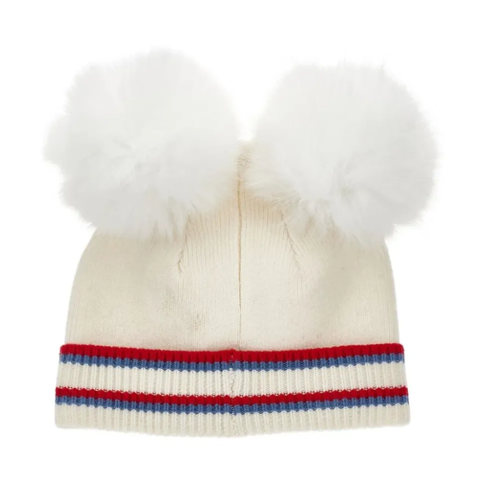 Monnalisa Minnie Mouse Hat, Hearts and Pompoms kombinerer legende Minnie Mouse detaljer med dobbelte fjer pomponer til brug i koldt vejr. Den stribede strækrem og broderede bogstaver tilføjer komfort og signaturstil. Nøgleattributter: Beige | Polyester | Varm | Blød | Strækstrikket bånd for komfortabel pasform | Dobbelte fjer pomponer | Stribet bånd | Hjerte motiver | Broderede bogstaver | Monnalisa logo | Paillet detaljer | Dimensioner & pasform: Strækstrikket bånd for en komfortabel pasform | Sammensætning & pleje: Hovedstof: 50% Polyester, 28% Viskose, 22% Polyamid | Pomponer: Fjer
