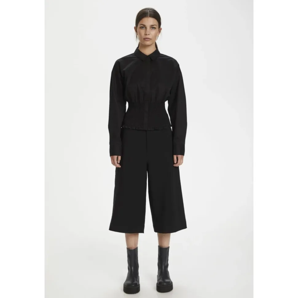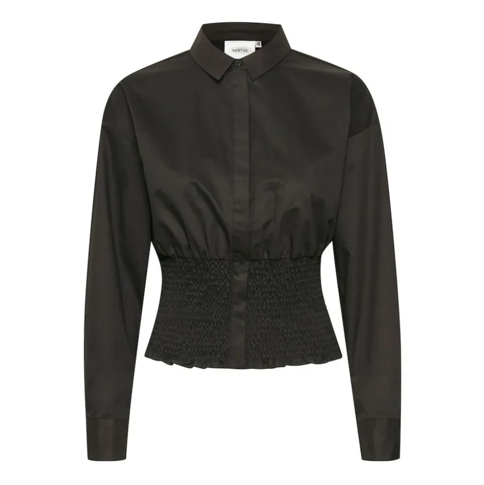 Gestuz Miriam Cotton Shirt er en slank, kort skjorte, der fremhæver taljen med elastiske sømdetaljer – ideel til at stoppe ned i nederdele eller højtaljede bukser. Vigtige egenskaber: Sort | Bomuld | Elastiske taljesømme | Designet til at stoppe ned i nederdele eller højtaljede bukser | Elastiske sømdetaljer | Mål & pasform: Længde: 55 cm (størrelse 34) | Slim fit | Kort længde | Sammensætning & pleje: 100% Bomuld