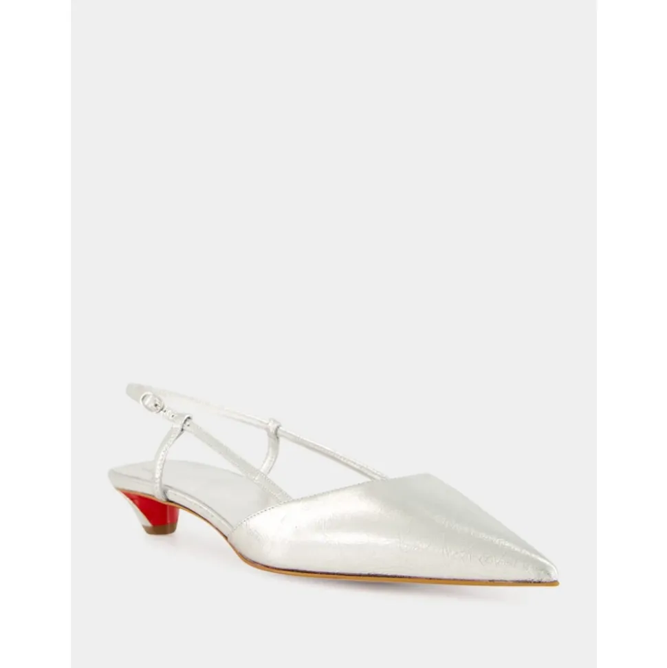 Christian Louboutin Miss Z Slingina 25 Slingback Pump kombinerer en elegant, spids silhuet med Maison’s signatur Loubi røde sål. Fremstillet i glitrende lamineret kalvelæder med en polstret indersål, er den designet til et poleret, kjole-fokuseret look. Vigtige egenskaber: Grå | Sølv | Lamineret kalvelæder | Forbedret komfort | Holdbar sålfinish | Polstret indersål | Slingback rem | Spids tå | Minimalistisk slingback rem | Loubi rød sål | Glimmerende lamineret finish | Dimensioner og pasform: Hælhøjde: 25 mm | Sammensætning og pleje: 100% kalveskindslæder | Speciallæderrens