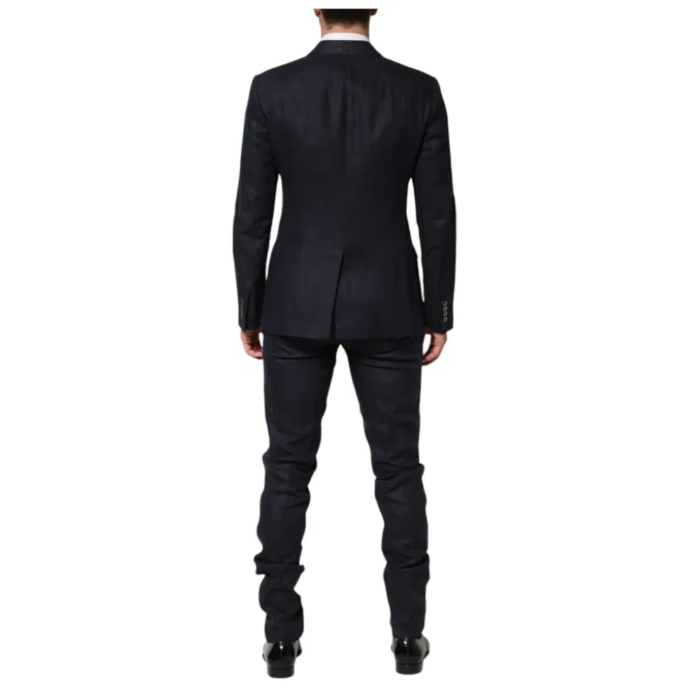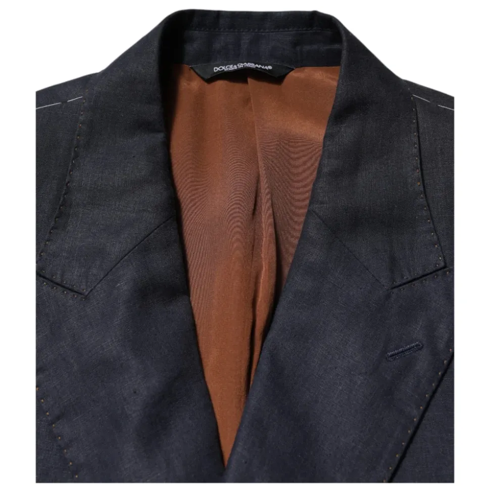 Forkæl din formelle stil med dette fantastiske Dolce & Gabbana dobbeltradede jakkesæt i mørkeblå. Fremstillet i Italien af 100% hør, har det slim-fit jakkesæt en peak reversjakke med knapmanchetter og et par bukser med 3-vejs lynlåslukning. Luksuriøst foret med 80% silke og 20% viskose udstråler dette eksklusive sæt høj håndværksmæssig kvalitet og sofistikering.