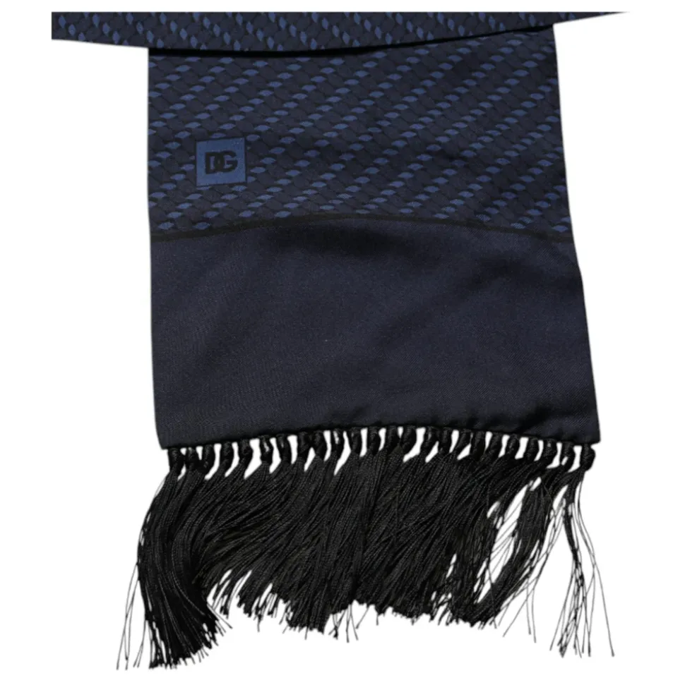 Opgrader din stil med dette luksuriøse silketørklæde fra Dolce & Gabbana. Dette mørkeblå tørklæde er fremstillet i Italien og har elegante frynsedetaljer og subtile logo-accenter. Produkt detaljer: Mørkeblå | Silke | Frynser | Logo-accenter | Dimensioner og pasform: Standard pasform | Sammensætning og pleje: 100% Silke | Renseri anbefales