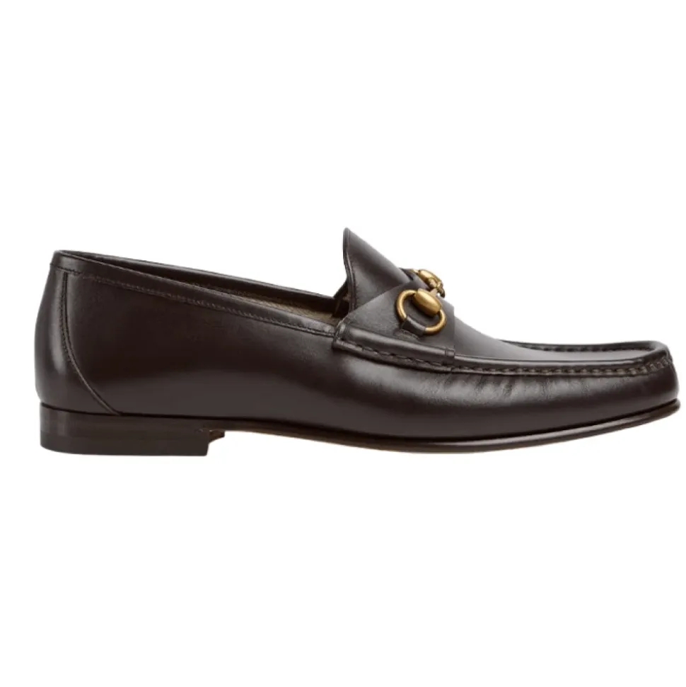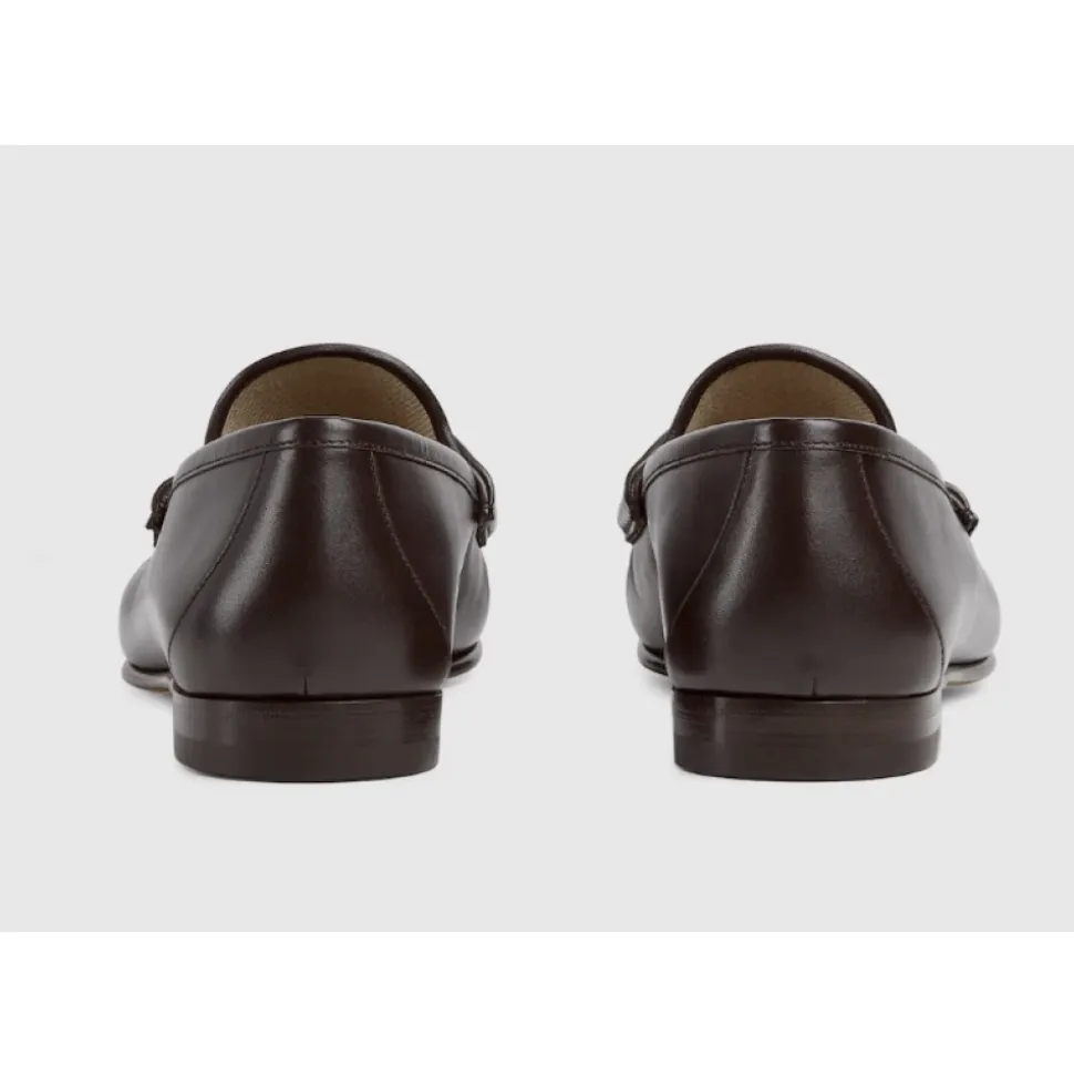 Forkæl din stil med disse Gucci loafers til mænd. Fremstillet i mørkebrunt læder med en horsebit detalje, disse slip-on flats har en behagelig flad hæl. Lavet med 100% læder yder- og sål samt stof foring.