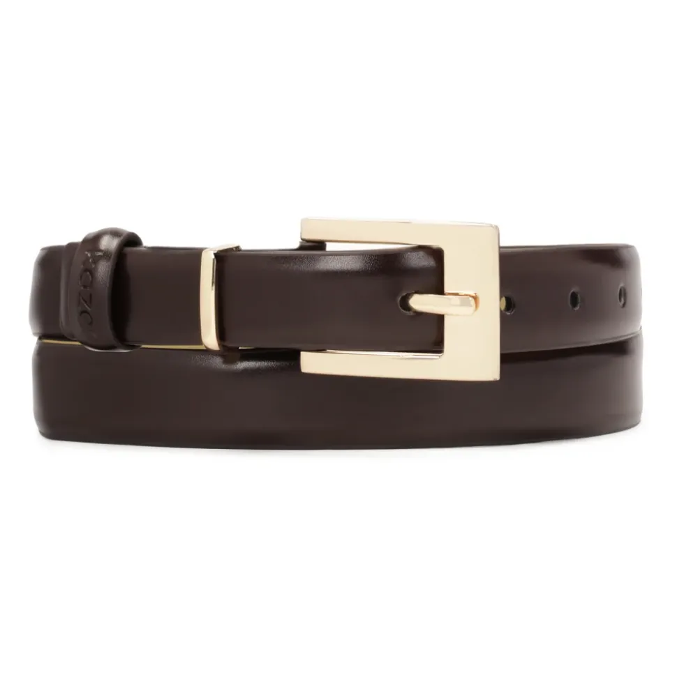 Bæltet er lavet af høj kvalitet naturlæder i mørkebrun farve, hvilket giver det et elegant og klassisk look. Bæltet er solidt lavet, hvilket beviser dets holdbarhed og kvalitet. Dets primære dekoration er en klassisk firkantet spænde i gul farve, som tilføjer til dets elegante look og understreger dets stil. Spændet er godt sat og designet, så længden af remmen let kan justeres for behagelig brug. Det samlede design skaber et harmonisk og stilfuldt tilbehør, perfekt til både elegante og afslappede outfits. Bæltet har 5 huller, afstanden mellem hullerne er 2,5 cm. Bæltet har en funktion til individuel længdejustering, takket være muligheden for at forkorte det ved spændet.