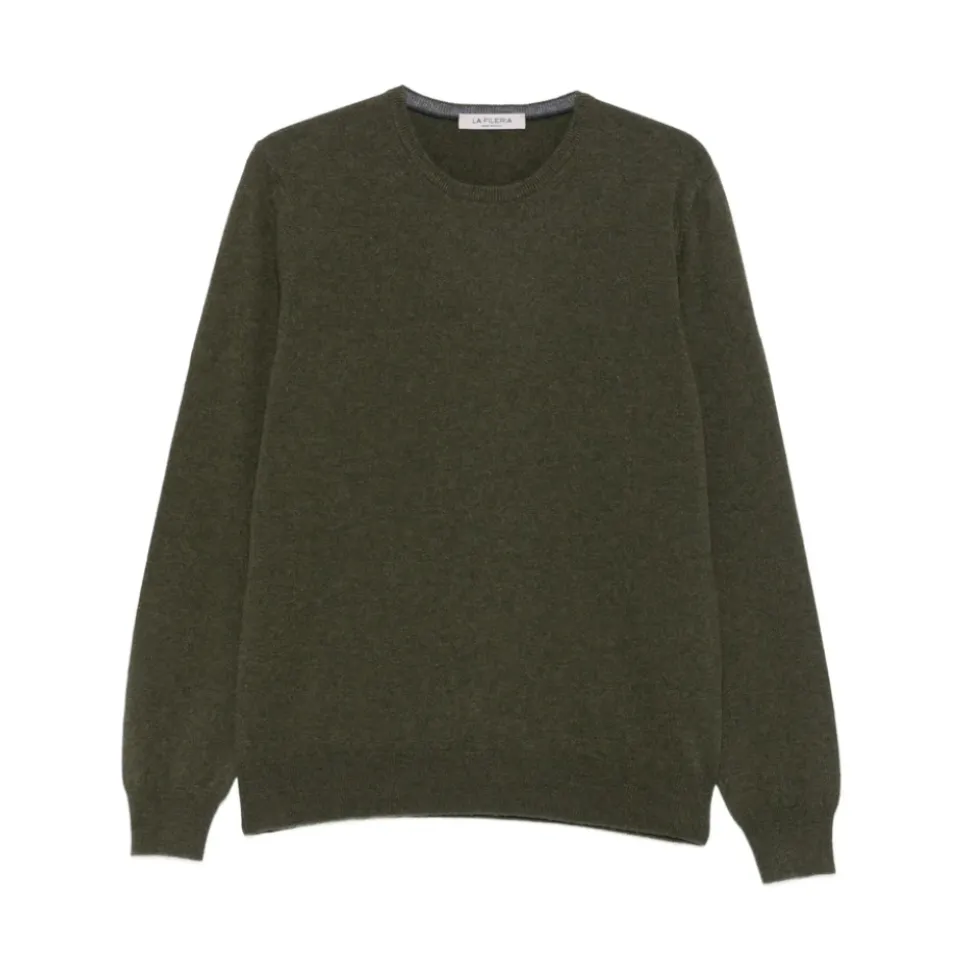 Opgrader din garderobe med denne mørkegrønne cashmere crew neck sweater fra La Fileria til mænd, der har lange ærmer og ribstrikkede manchetter og kant.