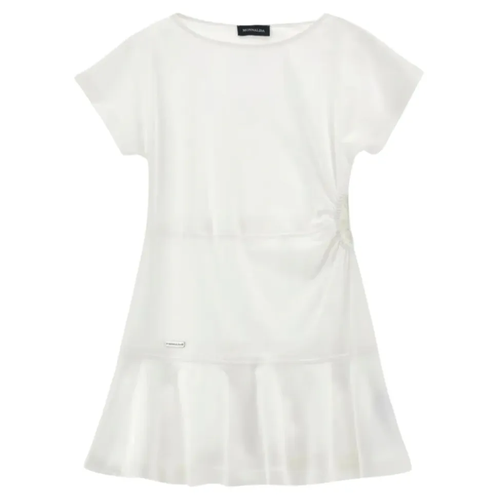 Monnalisa kjole i Milano-strik og viskose, med en rund halsudskæring og en flæse, der skaber en let udstående, komfortabel silhuet. Velegnet til fritid, uformelle fester og udflugter, den leverer et elegant, men let anvendeligt look. Vigtigste egenskaber: Hvid | Viskose | Rund halsudskæring | Flæse | Let udstående silhuet | Udstående design | Dimensioner og pasform: Let udstående silhuet | Udstående design | Sammensætning og pleje: 65% viskose | 28% polyamid | 7% elastan