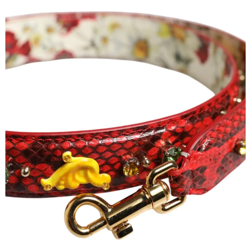 Forkæl din håndtaskesamling med denne fantastiske Dolce & Gabbana skulderrem. Lavet af 100% Python Læder i et levende multicolor design med gulddetaljer, har denne rem to hummerklo-låse til nem fastgørelse. Produceret i Italien med udsøgt håndværk, er dette eksklusive tilbehør et must-have for modebevidste kvinder. Model: Skulderrem til tasker. Mål: 105cm x 3cm.