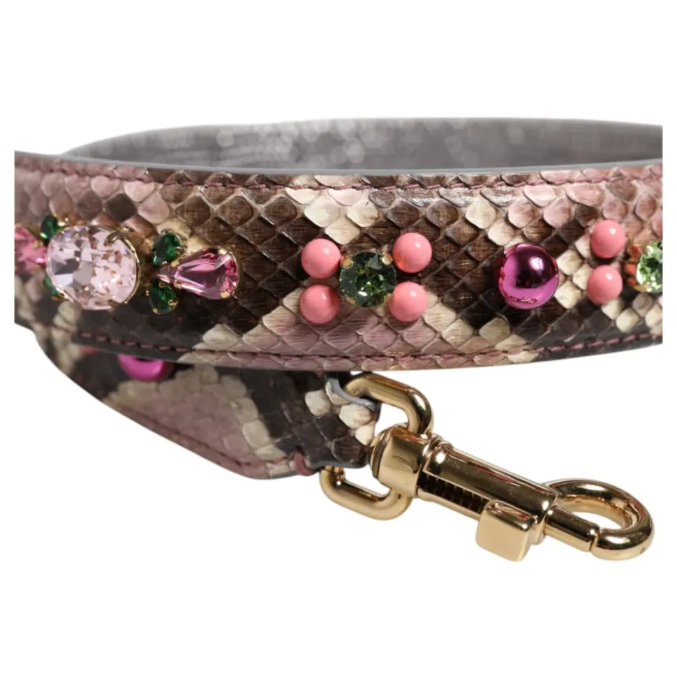 Forkæl din håndtaskesamling med denne smukke, spritnye Dolce & Gabbana skulderrem. Lavet af 100% Python Læder i et fantastisk multicolor design med gulddetaljer. Denne eksklusive rem har to hummerklo-låse til nem fastgørelse. Model: Skulderrem til tasker. Køn: Kvinder. Farve: Multicolor. Materiale: 100% Python Læder. Mål: 68cm x 3cm. Produceret i Italien med høj håndværksmæssig kvalitet.