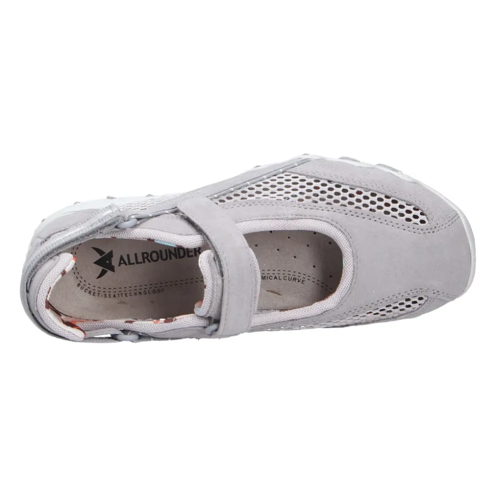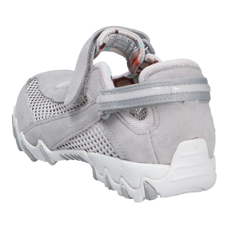 Allrounder Niro er en sporty hverdagssandal fra Allrounder by Mephisto, designet til let at tage af og på og komfort hele dagen. Overdelen i blødt velourlæder og den justerbare velcrorem giver en åndbar og sikker pasform til daglig brug. Nøgleegenskaber: Grå | Grau | Velourlæder | Åndbart for | Stødabsorberende sål | Skridsikker, slidstærk gummiydersål | Justerbar velcrorem | Aftagelig polstret tekstilindersål | Elastisk tekstilfor for øget komfort | Rund tå | Sporty slip-on silhuet | Flad hæl | Mål & pasform: Hælhøjde: 1,5 cm | Regular fit | Bredde G (komfortbredde) | Skostørrelsen er normal | Sammensætning & pleje: Velourlæder (Veloursleder) | Tekstilfor | Aftagelig tekstilindersål | Gummisål (Caoutchouc Lite)