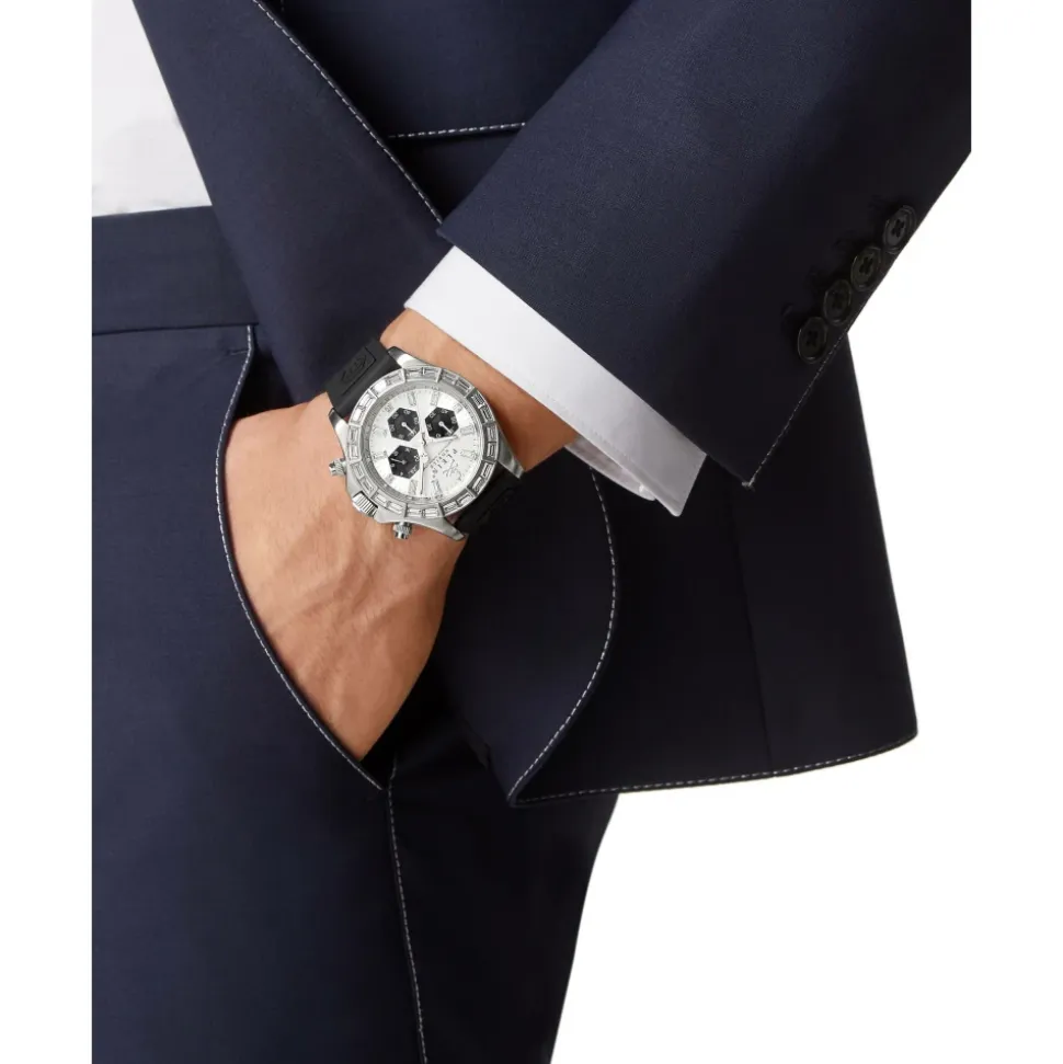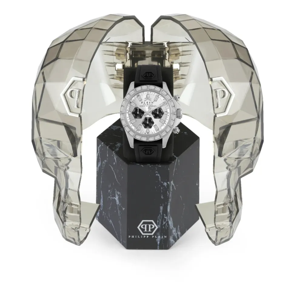 Philipp Plein Nobile Racing Superlative kombinerer motorsport-inspireret design med en krystalbesat urskive og en slidstærk silikonerem, hvilket giver et stilfuldt hverdagsur med præcis kvartstidtagning. Nøgleattributter: Grå | Sølv | Sort | Rustfrit stål | Vandafvisende op til 5 ATM | Quartz urværk | Slidstærk silikonerem for komfort | Krystalbesat urskive | Motorsport-inspireret design | Sølvfarvet urkasse i rustfrit stål | Dimensioner & pasform: Urkassediameter: 43 mm | Sammensætning & pleje: Rustfrit stål | Silikone | Krystal