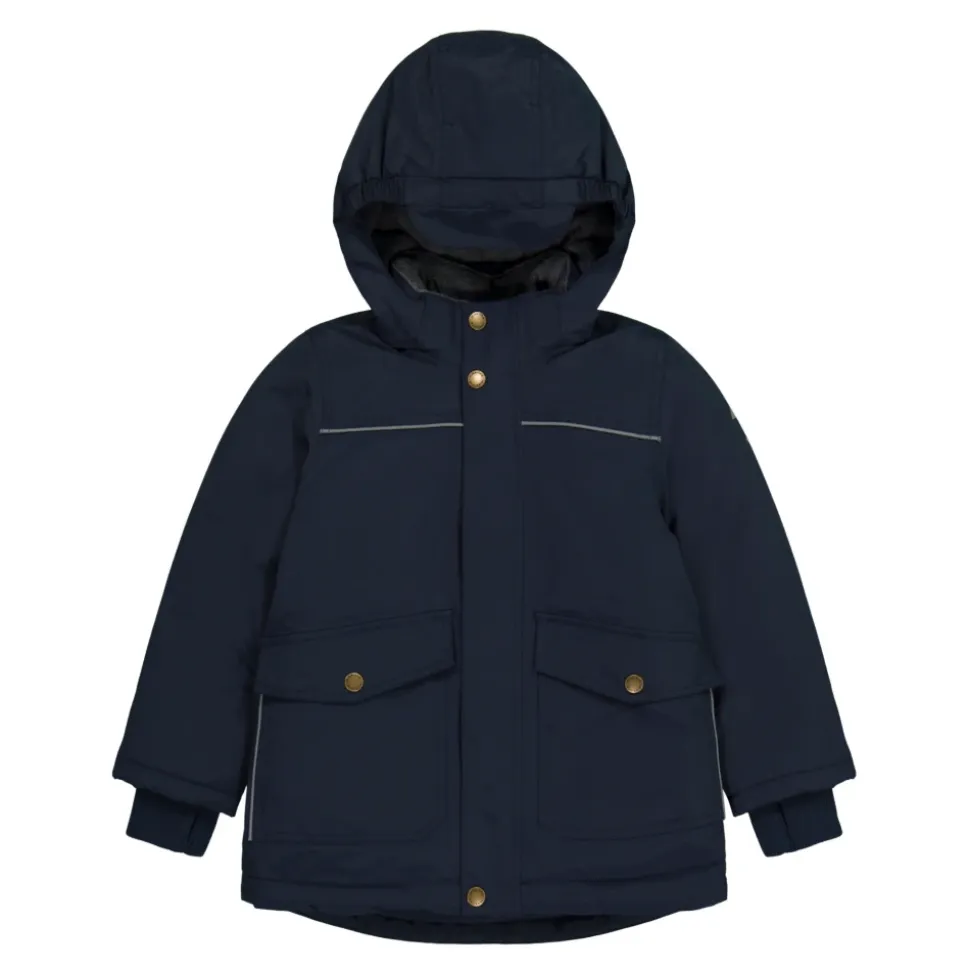 Hold dig varm og stilfuld denne vinter med Mikk-Line Nylon Drengejakke i Blue Nights. Lavet af holdbart nylon med en fluorfri belægning, denne jakke har polyesterpolstring, blød fleecefor i hætten og kroppen samt en glat YKK-lynlås. Designet med praktisk brug i tankerne, inkluderer den store lommer, ribbede manchetter, tommelfingerhuller og en aftagelig hætte. Vindtæt, vandtæt og åndbar, denne jakke er perfekt til at holde dit barn varmt og beskyttet. Certificeret af OEKO-TEX® Standard 100 for sikkerhed og lavet med nikkel-fri hardware. Materiale: 100% Nylon, Foring: 100% Polyester. Pleje: Maskinvask ved 40 grader. Stilnummer: 16902ML_1_Blue Nights.
