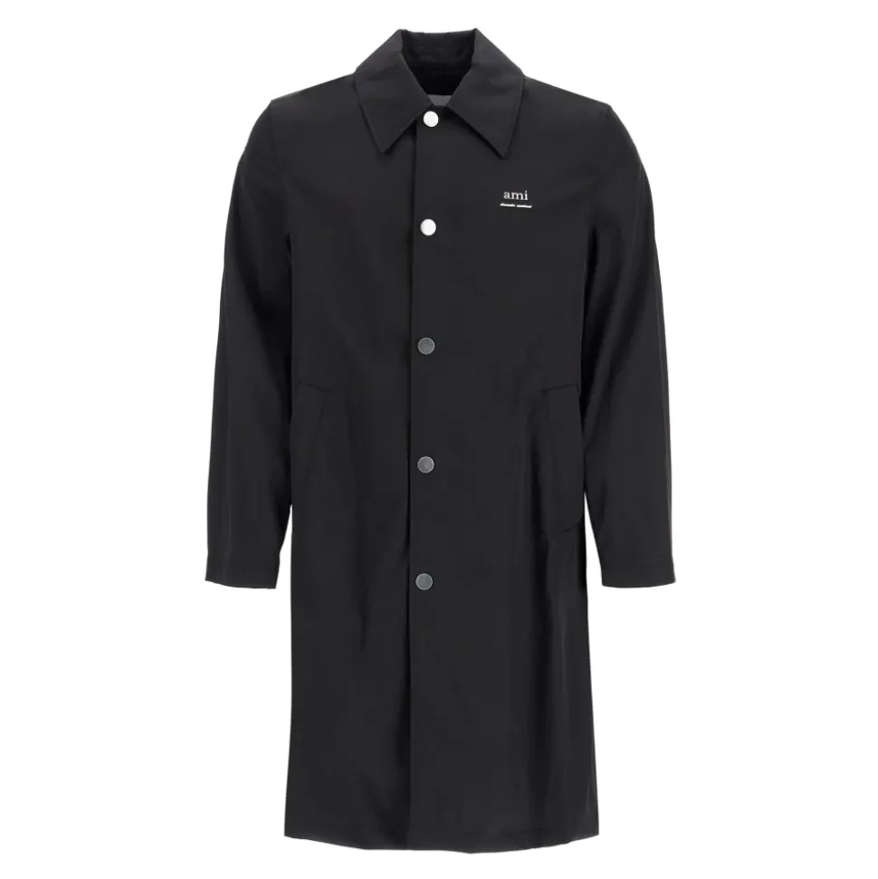 Forøg din stil med Ami Paris unisex bilfrakke, lavet af nylon og bomuldstwill. Denne klassiske enkeltknap design har mærkede knapper, en skjortekrave, sidelommer og en central slids bagpå. Med en regelmæssig pasform og lige snit er denne frakke et alsidigt tilbehør til din garderobe. Modellen er 187 cm høj og bruger størrelse L.