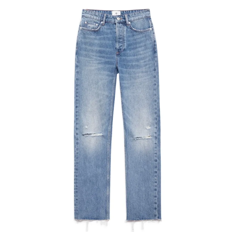 Anine Bing Bruno Jeans, Destructed Antique Blue – Størrelse 31. Køb nu for stilfulde straight jeans til kvinder.