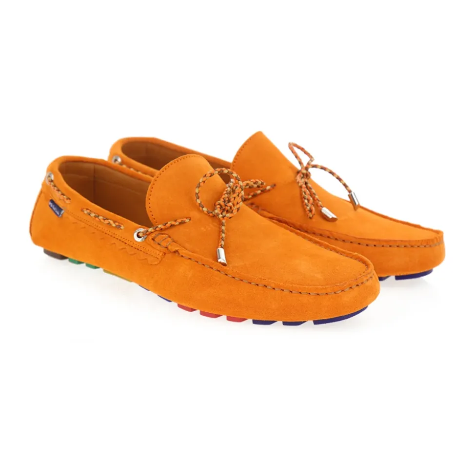 PS By Paul Smith Sailor Shoes i Orange. Klassiske ruskindsmokkasiner med kontrasterende snørebånd foran. Officielt logoetiket på siden. Gummisål med flerfarvede ‘Sport Stripe’ detaljer og indgraveret logo. Lavet af 100% ruskind. Farve: Orange.