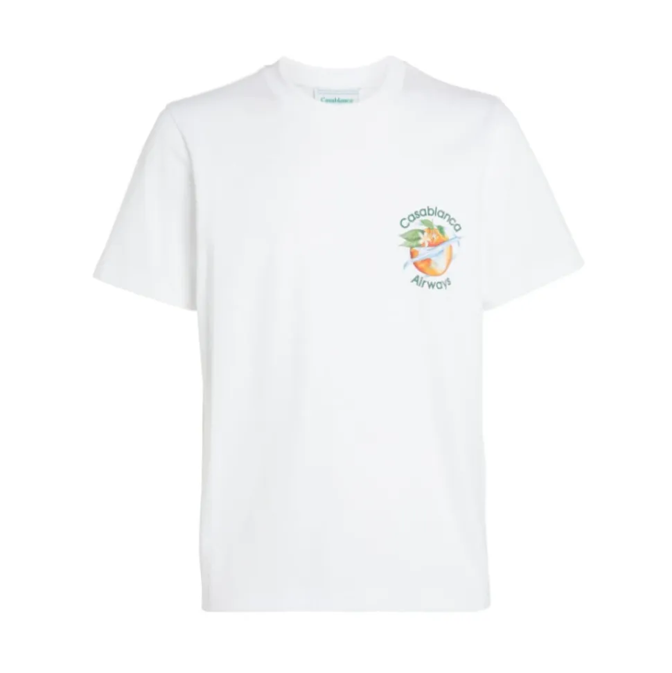 Opgrader din afslappede stil med denne hvide Casablanca ‘Orbite Autour De L’Orange’ kortærmede t-shirt. Med en trykt grafik på brystet og ryggen tilbyder denne bomuldst-shirt en afslappet pasform og klassisk ribhals.
